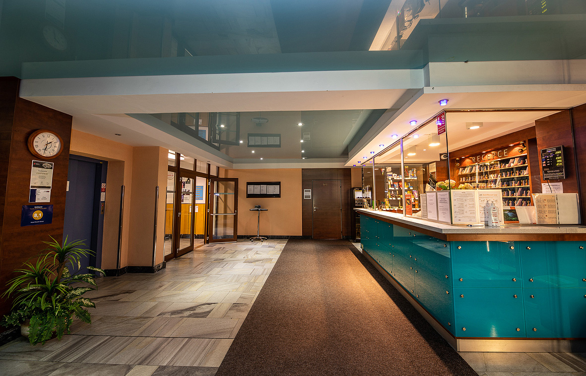 recepce / lobby, restaurace, kavárna, vinárna, seminární místnosti až pro 100 osob s projekční technikou a wi-fi připojením k internetu, dětská herna, wi-fi připojení k internetu, úschovna lyží a lyžařských bot, místnost pro úschovu zavazadel, výtah, vyhrazené parkoviště, nabíjecí stanice elektoaut*, služby hotelové prádelny* (na vyžádání), půjčovna* zimního vybavení (sáně, boby)