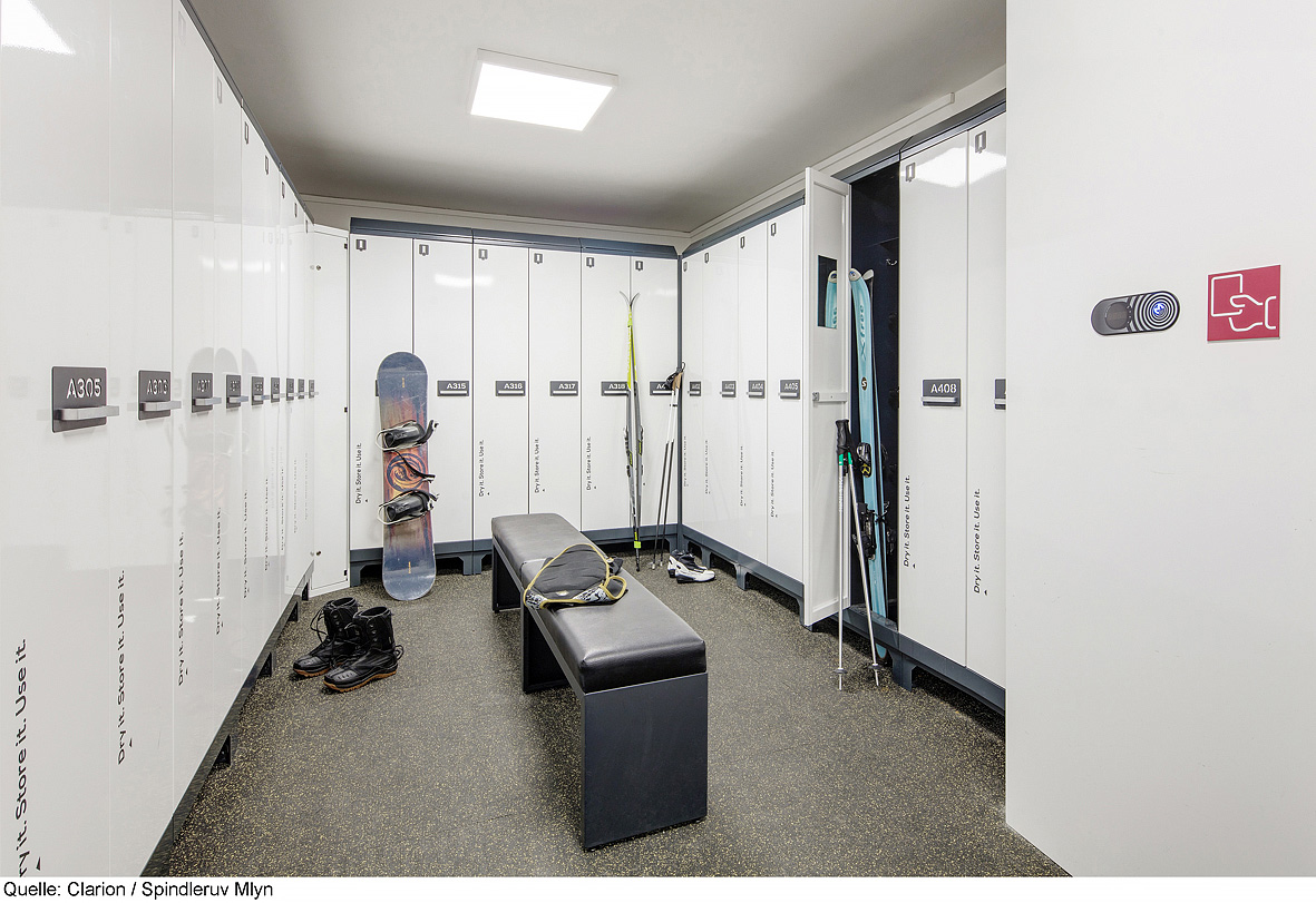 recepce / lobby, restaurace, bar, kavárna, společenská místnost, kongresový sál s projekční technikou a wi-fi připojením k internetu, seminární místnost, dětský koutek, herna, odpočinková místnost / čítárna, nepravidelné animační programy, internet point / wi-fi připojení k internetu, místnost pro úschovu zavazadel, úschovna lyží a lyžařských bot, výtah, vyhrazené parkoviště