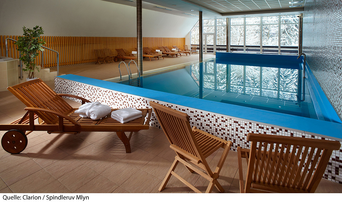 bazén# 12 x 6 m, vířivka#, finská sauna*, pára*, horizontální solárium*, infrakabina*, relaxační koutek* s lehátky, masáže*, posilovna#, biliár*; služby označené # mají u pobytů od 2 do 4 nocí vstup zdarma mezi 9.00 až 12.00 hodinou a u pobytů na 7 a více nocí zdarma navíc i mezi 14.00 až 21.00 hodinou; bazén je od 19:00 hodin přístupný pouze pro osoby starší 16 let
