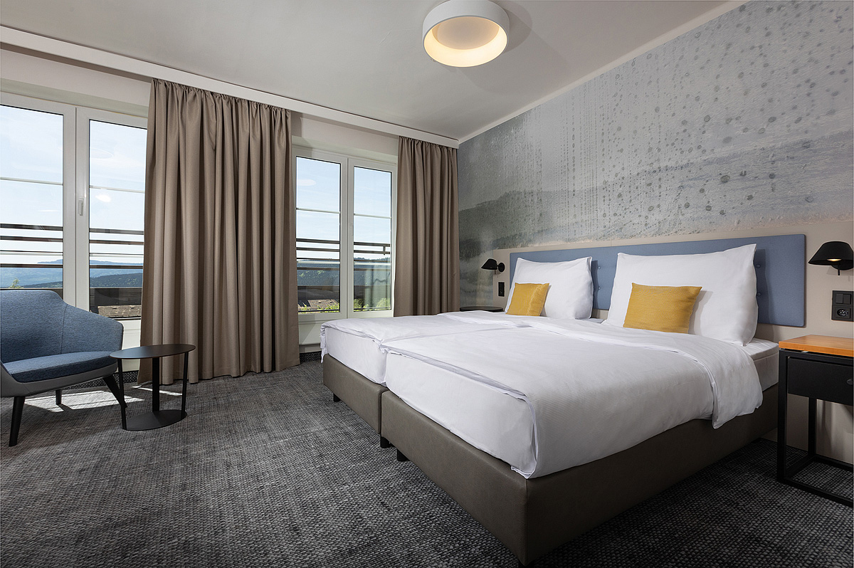25 m² - pokoj s manželskou postelí či 2 samostatnými lůžky, sociální zařízení, zpravidla balkon s výhledem do okolí