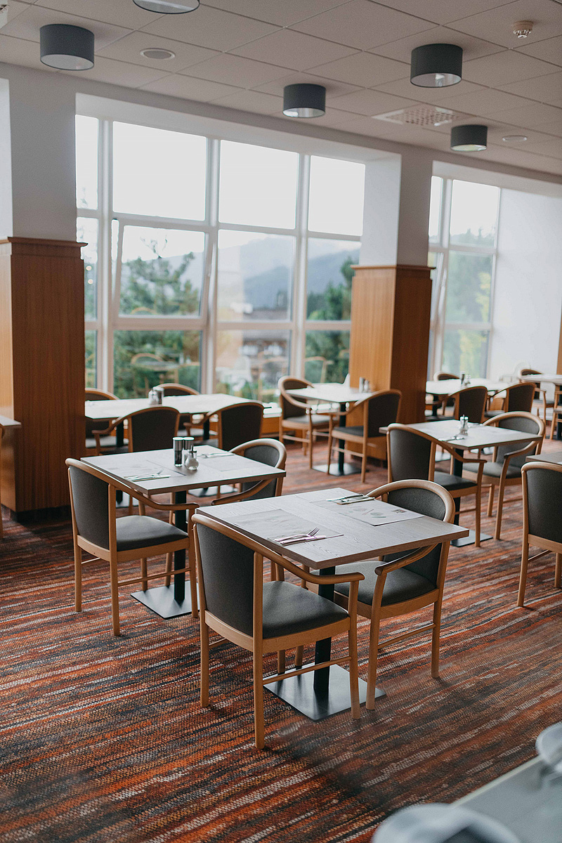 recepce, restaurace, lobby bar, společenská místnost, konferenční salonky s projekční technikou a wi-fi připojením k internetu, dětský koutek, úschovna lyží a lyžařských bot, výtah, vyhrazené parkoviště, wi-fi připojení k internetu