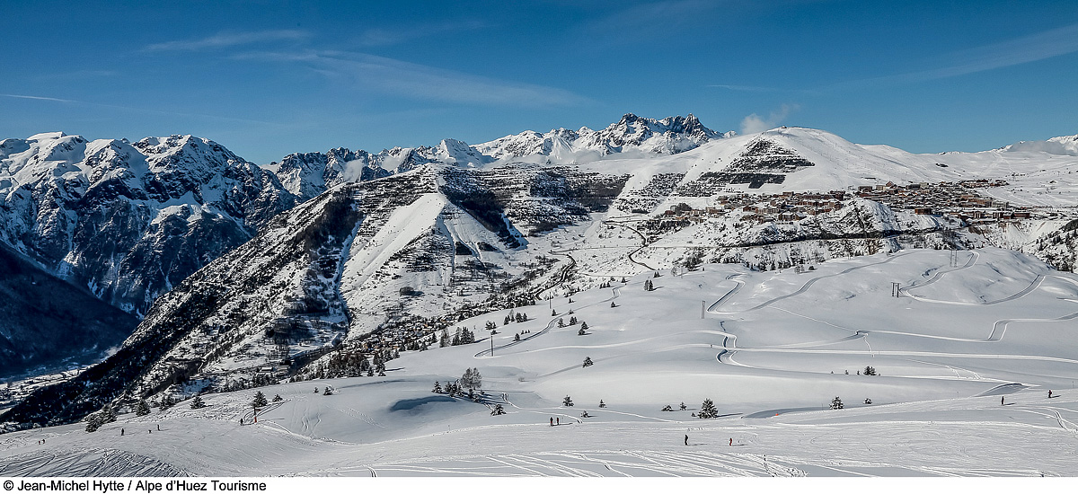 Středisko Alpe d’Huez je lyžařským srdcem pohoří Grandes Rousses. Jde o oblast přezdívanou „Sluneční ostrov“, vzdálenou 60 km od Grenoblu, rozprostírající se na jižně orientovaném vysokohorském platu pod majestátním vrcholem Pic Blanc.