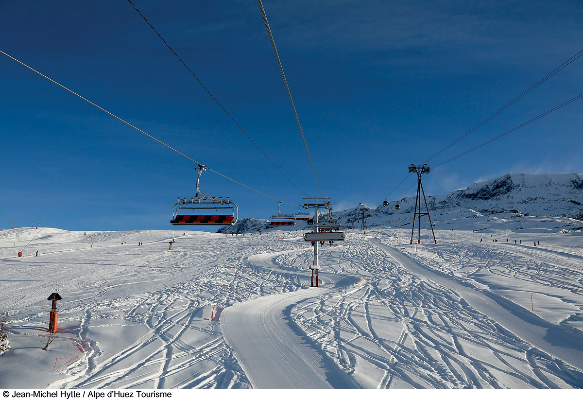 Vskutku obrovské lyžařské zážitky zaručuje oficiálně nejdelší černá sjezdovka Evropy, 16 km dlouhá La Sarenne s boulemi a úctyhodným převýšením 1 600 m. Úchvatná je však i proslulá sjezdovka nazývaná Le Tunnel procházející 200 m osvětleným tunelem vyhloubeným ve skále, rychlé „červené“ sjezdovky sestupující do Oz en Oisans či překrásná „černá“ La Fare při sjezdu do Vaujany. Ale bát se ve středisku Alpe d’Huez nemusí ani ti méně lyžařsky zdatní – najdou zde velké množství poklidných svahů a rozlehlé zóny pro začátečníky, jde tedy o středisko vhodné nejen pro náročné lyžaře, ale i pro rodiny s dětmi.