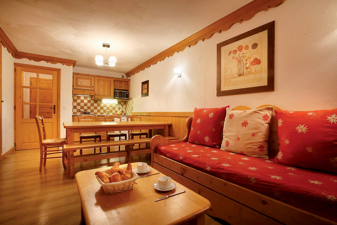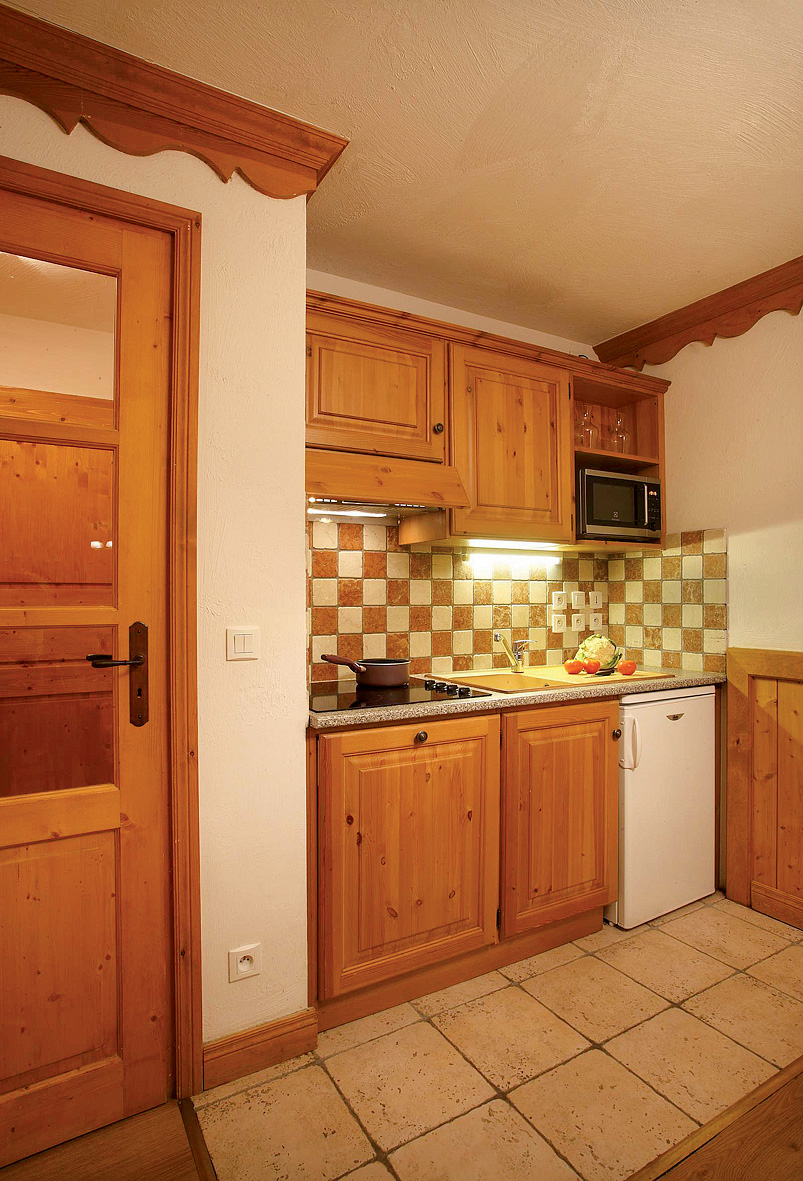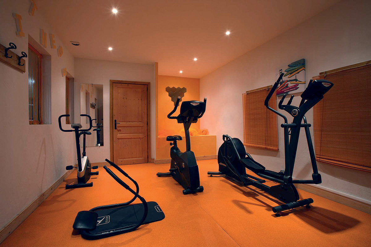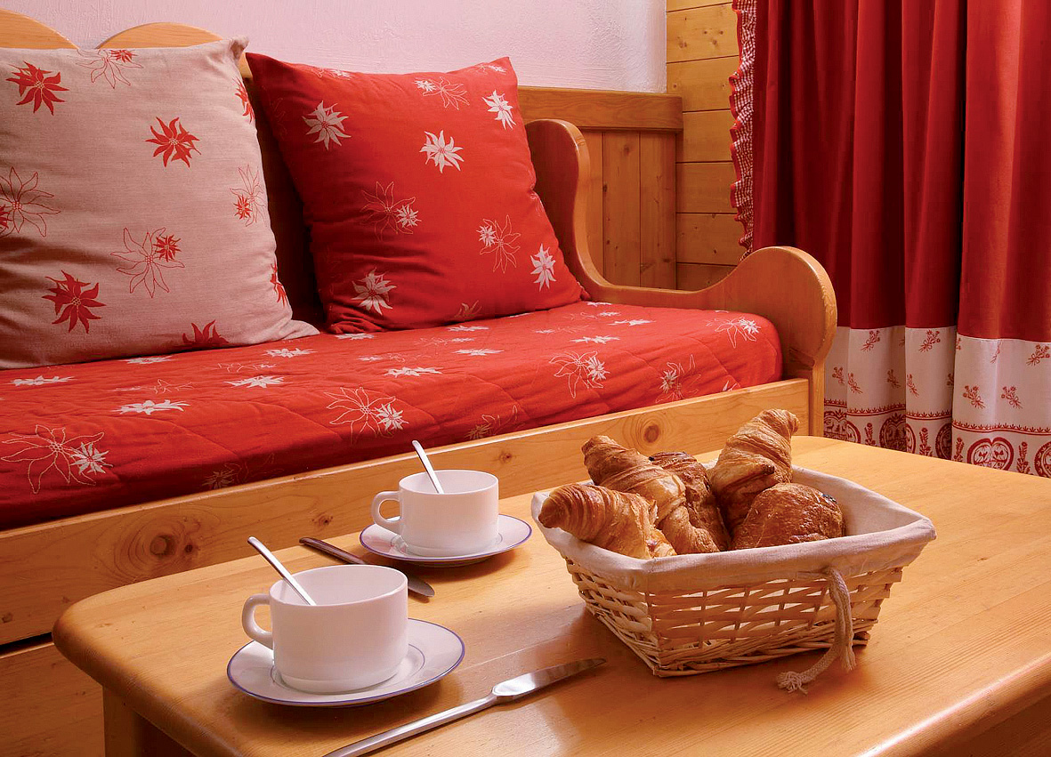 TV sat., telefon, fén, trezor, myčka nádobí, trouba (s výjimkou typologie bilo 2 a trilo 4), mikrovlnka, kávovar, rychlovarná konvice, topinkovač, přístroj na přípravu raclette / pierrade / fondue (na vyžádání na recepci), dřevo do krbu (pro apartmány s krbem; 1 pytel zdarma, další 10 €)