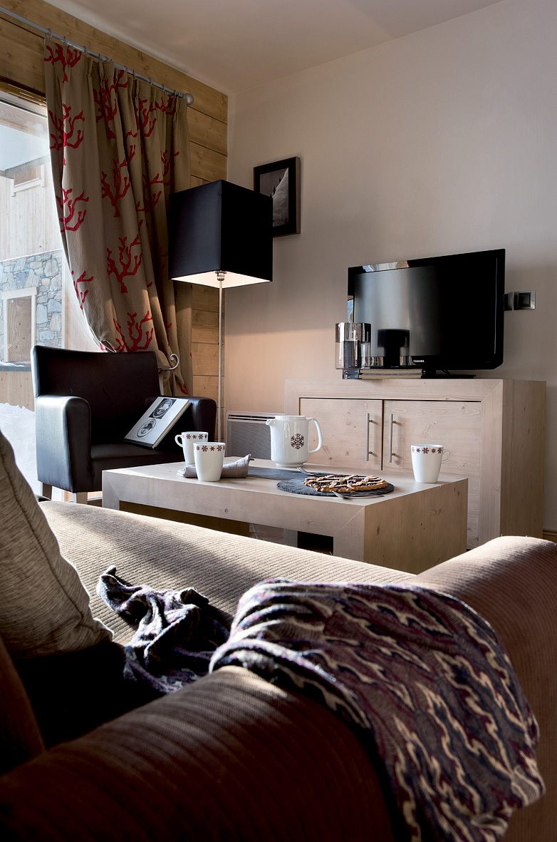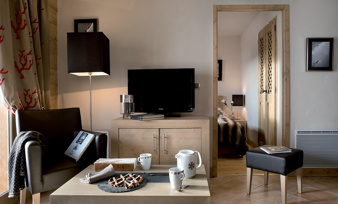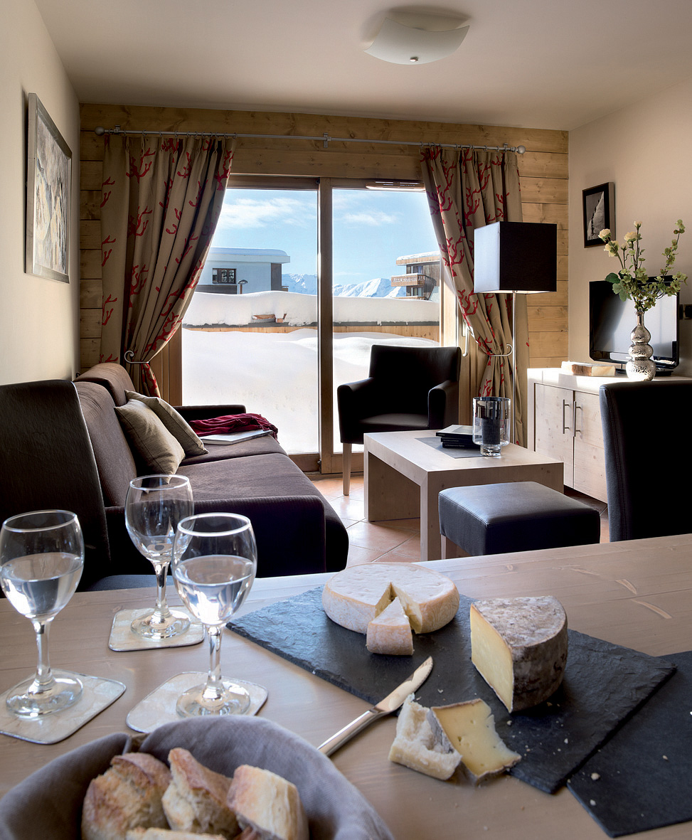 60 m² - 1 ložnice s manželskou postelí, 2 ložnice se 2 samostatnými lůžky, obývací pokoj s kuchyňským koutem a rozkládacím gaučem pro 2 osoby (možno i typ "šuplík"), 2x sociální zařízení (1x se sprchou, 1x s vanou), balkon; některé apartmány jsou dvoupodlažní
