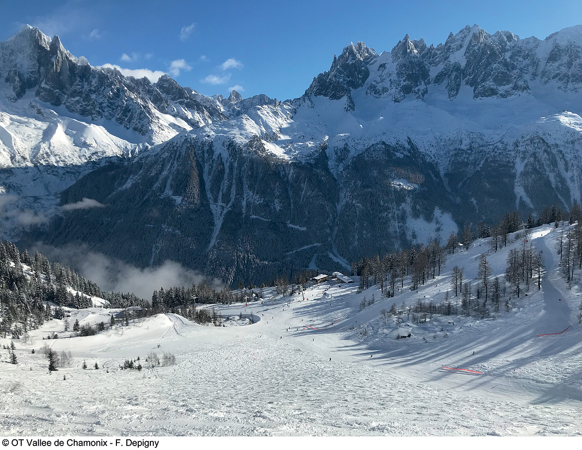 platí pro skiareály Brévent-Flégère / Domaine de Balme / Lognan – Les Grands Montets (kabinová lanovka v rekonstrukci – přístup přes Plan Joran) a menší skiareály pro děti Le Savoy / Les Chosalets / Les Planards / La Vormaine