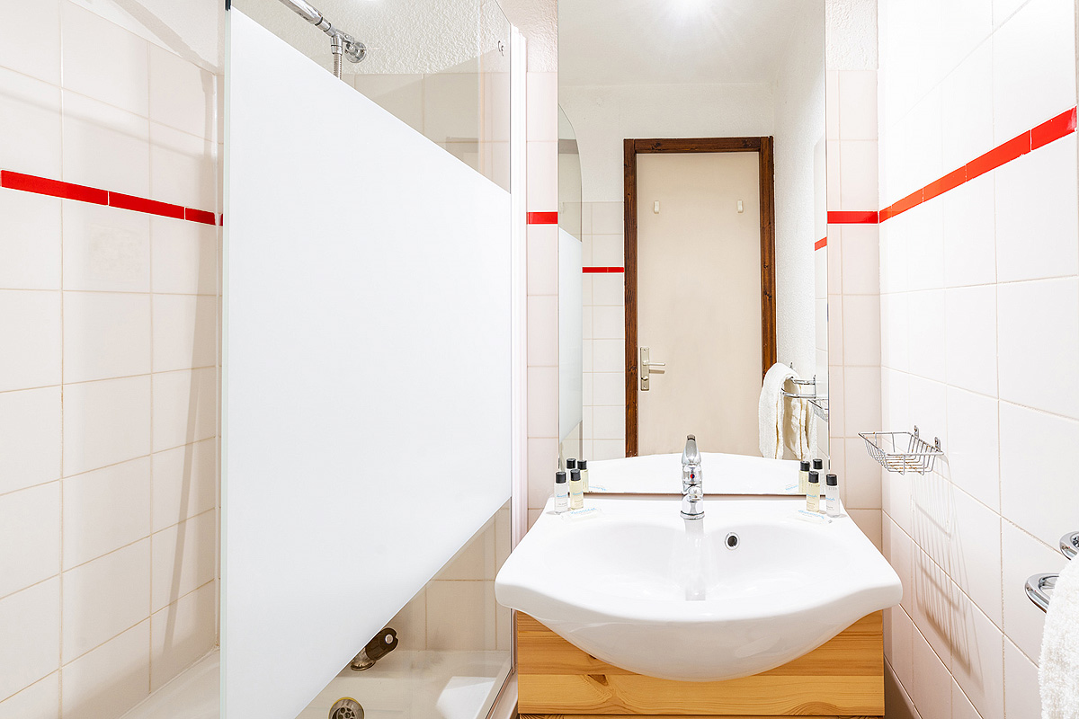 27 m² - 1 ložnice se 2 samostatnými lůžky, obývací pokoj s kuchyňským koutem, rozkládacím gaučem pro 2 osoby (možno i typ "šuplík") a 1 samostatným lůžkem, sociální zařízení s vanou, balkon nebo lodžie s výhledem na hory