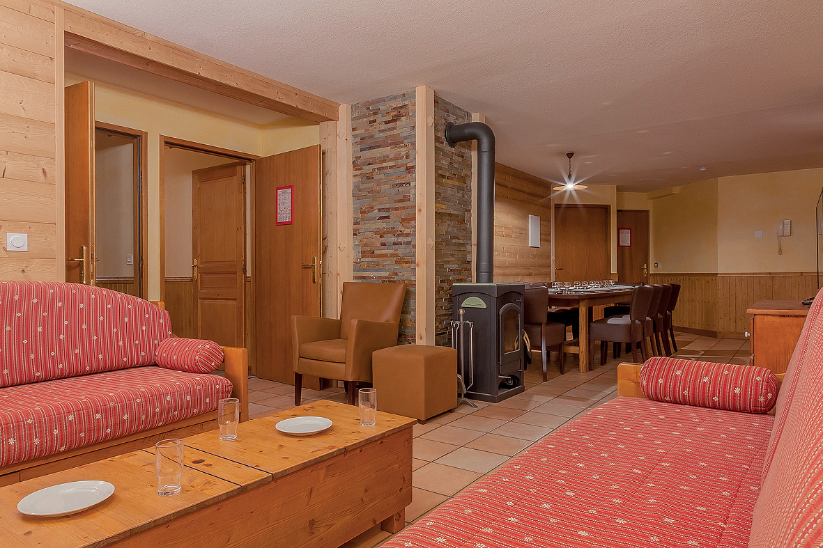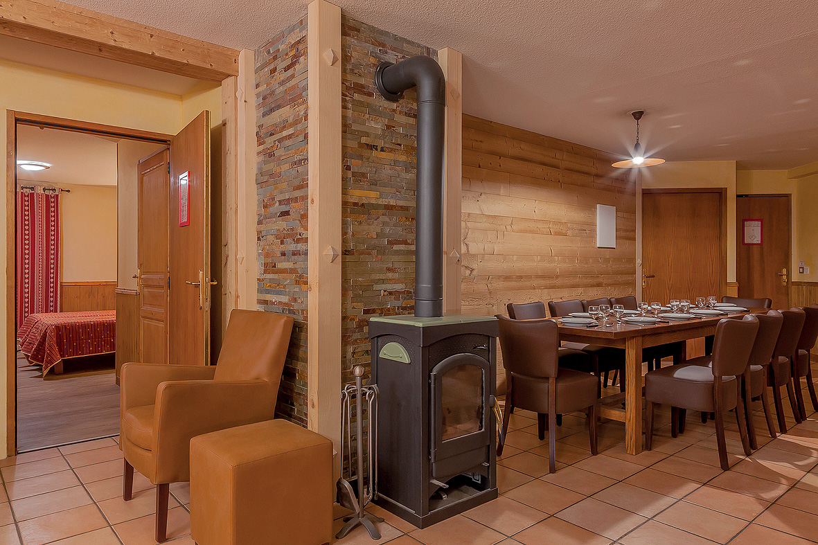 sextilo 12 - 115 m² - 5 ložnic se 2 samostatnými lůžky, obývací pokoj s kuchyňským koutem, krbovými kamny a rozkládacím gaučem typu "šuplík" pro 2 osoby, 5x sociální zařízení (2x se sprchou, 3x s vanou), bakon