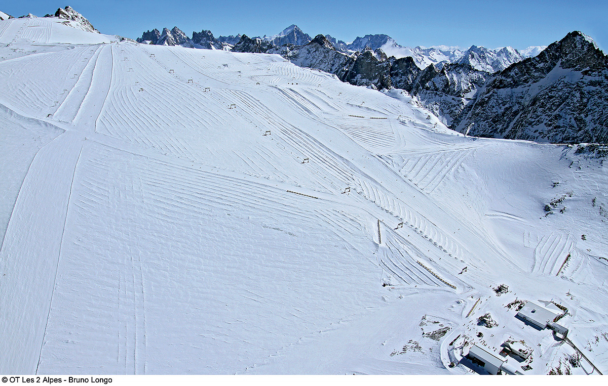 Les 2 Alpes je velké a vynikající moderní alpské „celoroční“ středisko rozkládající se 60 kilometrů východně od Grenoblu v masivu La Meije na úpatí největšího lyžařského ledovce v Evropě Mont de Lans. Nabízí až 170 dní dlouhou lyžařskou sezónu, a to bez započtení letního provozu na ledovci. Skiareál vznikl spojením oblastí Mont-de-Lans a Venosc a následným vybudováním nového střediska Les 2 Alpes o jedno „patro“ výše v nadmořské výšce 1.650 m, čímž umožňuje fascinující lyžování až do výšky 3.523 m n. m. Disponuje 225 kilometry pečlivě upravovaných sjezdových tratí všech stupňů obtížnosti s převahou sjezdovek nižší a střední náročnosti. V posledních letech zprovozněná modrá sjezdovka umožnila dojezd až do střediska i méně zdatným lyžařům. K pohodlí sjezdařů přispívá i každoroční renovace lanovek. Novinkou sezóny 2023/24 je nová kombinovaná lanovka Belle Etoile, tedy střídavě 10místné kabinky a 6sedačky. V letech 2024–2025 bude ve dvou etapách vystavěna vysokorychlostní a vysokokapacitní lanovka Jandri Express vedoucí ze střediska až na ledovec, výrazně se tím zrychlí přeprava a zmizí fronty.