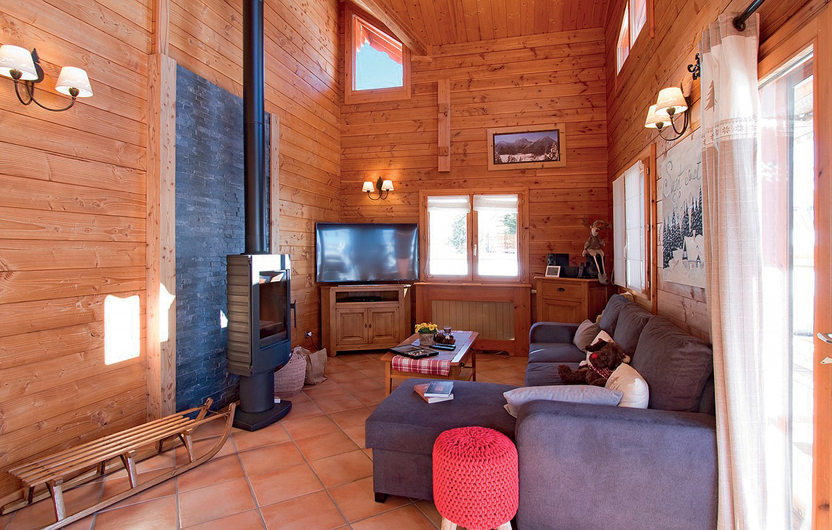 200 m² - 1. podlaží chaletu: 1 ložnice se 2 samostatnými lůžky, 1 ložnice se 2 palandami, 2x sociální zařízení; 2. podlaží chaletu: 1 ložnice s manželskou postelí, obývací pokoj s krbem a kuchyňským koutem, sociální zařízení, terasa s vířivkou; 3. podlaží chaletu: 2 ložnice s manželskou postelí, 2x sociální zařízení