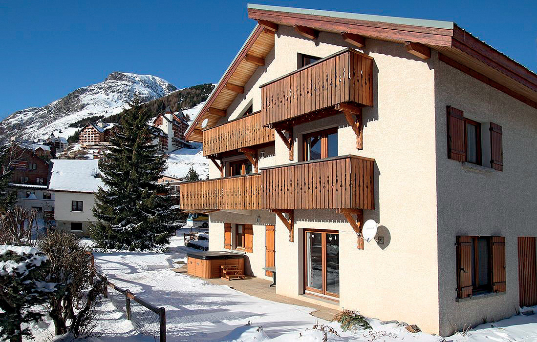 200 m² - 1. podlaží chaletu: 2 ložnice se 2 samostatnými lůžky, obývací pokoj s kuchyňským koutem, 2x sociální zařízení, terasa; 2. podlaží chaletu: 3 ložnice se 2 samostatnými lůžky, 3x sociální zařízení, balkon; 3. podlaží chaletu: 3 ložnice (1x s manželskou postelí, 1x se samostatnými lůžky, 1x s palandou), 3x sociální zařízení, balkon