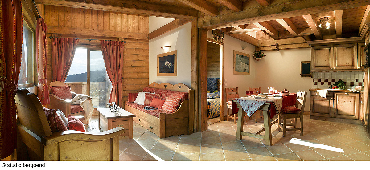 35 m² - 1 ložnice se 2 samostatnými lůžky, obývací pokoj s kuchyňským koutem a rozkládacím gaučem pro 2 osoby (možno i typ "šuplík"), sociální zařízení se sprchou či vanou, balkon