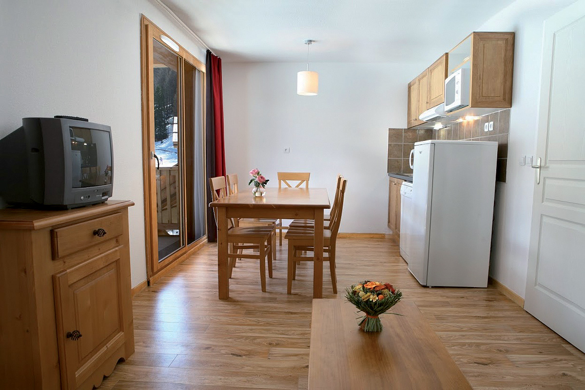 v blízkosti centra moderní části Les Orres Bois Méan a jen pár kroků od nástupu na lanovku
