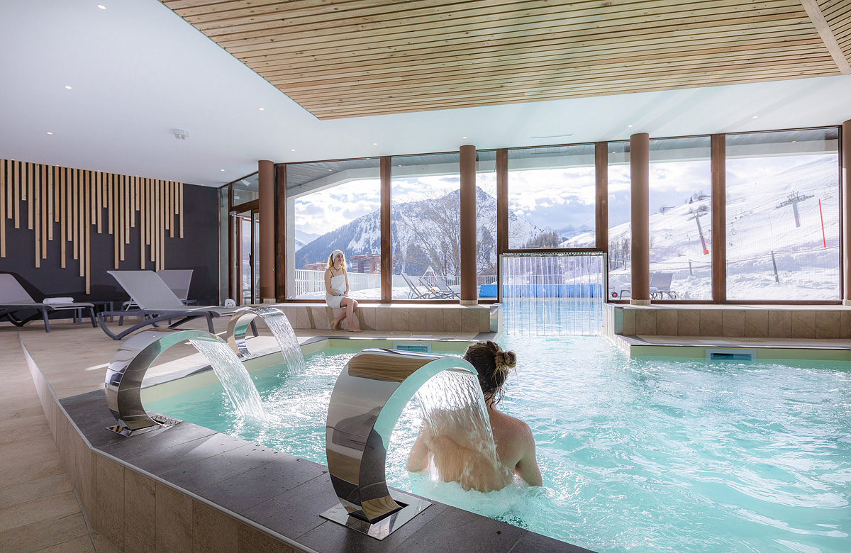 bazén, venkovní vyhřívaný bazén, sauna#, pára#, masáže*, kosmetické služby*; služby označené # mají 1 vstup / osoba / den do 16.00 hod. zdarma (rezervace nutná předem), po 16.00 hod. vstup za poplatek; služby označené # mohou využívat jen osoby od 18 let; děti do 16 let mohou do bazénu jen v doprovodu dospělé osoby