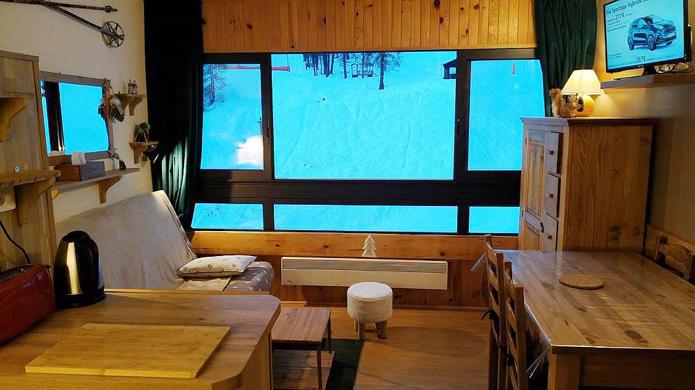 20 m² - obývací pokoj s kuchyňským koutem a rozkládacím gaučem pro 2 osoby, sociální zařízení se sprchou či vanou, kabina či vstupní místnost s palandou pro 2 osoby, balkon či terasa orientovaná směrem ke sjezdovce