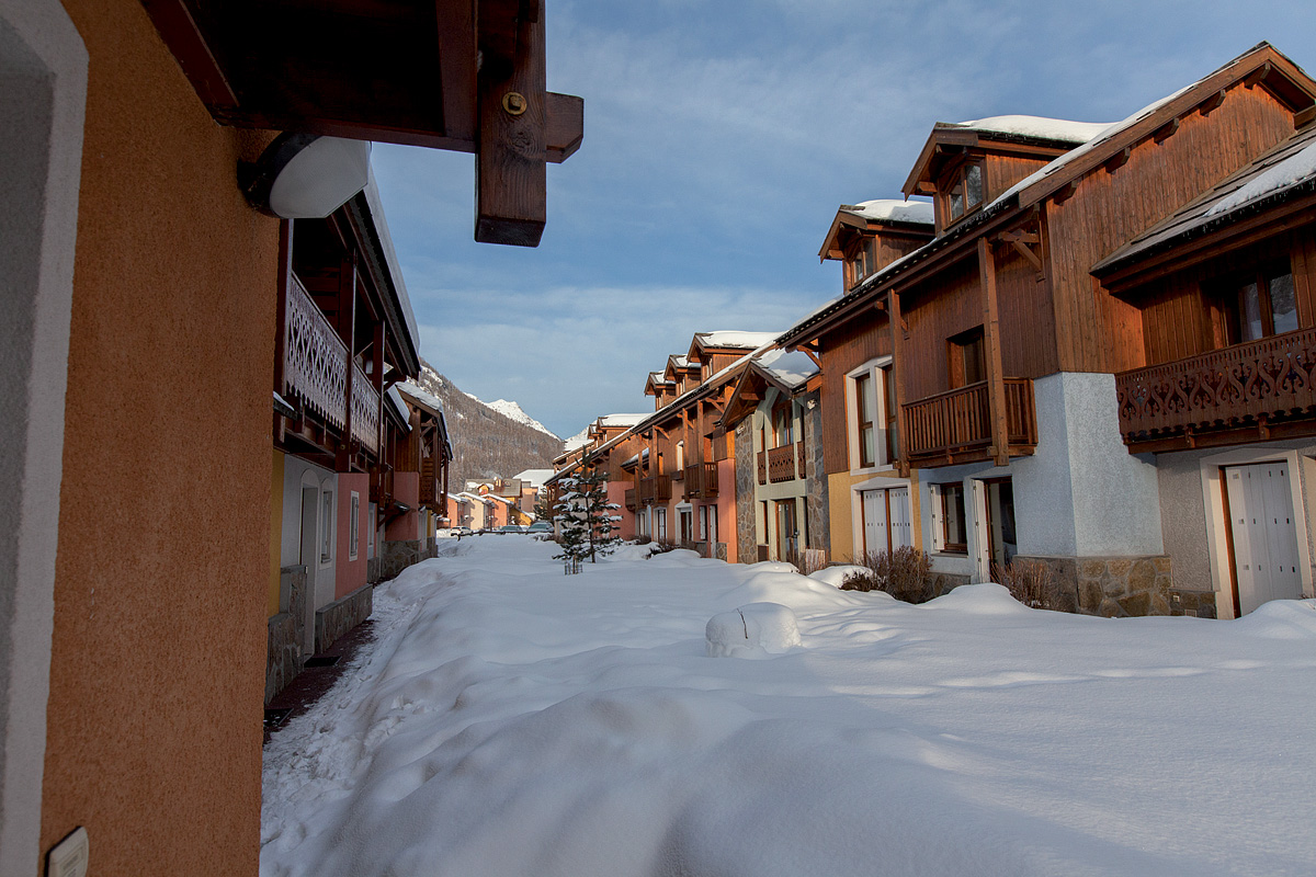 Serre Chevalier - lokalita Villeneuve 1400, centrum lokality Villeneuve - 700 m, skiareál Serre Chevalier Vallée - 350 m; za dobrých sněhových podmínek příjezd na lyžích možný až téměř k residenci