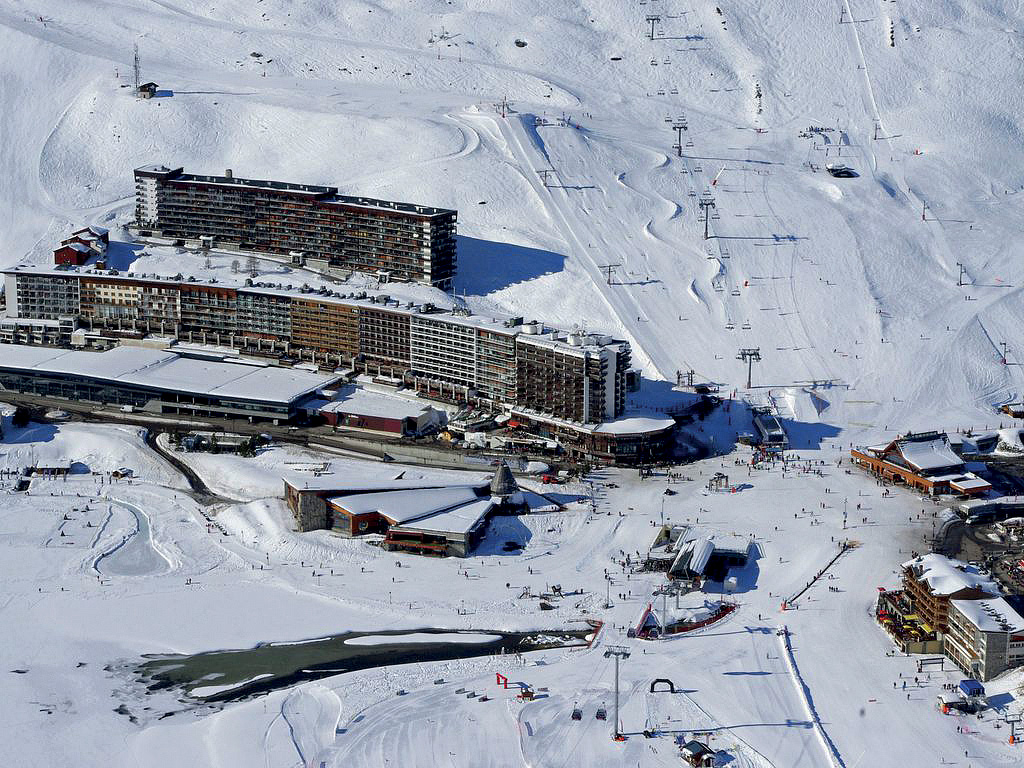 Tignes - lokalita Le Lac, centrum - max. 150 m, skiareál Tignes - max. 100 m