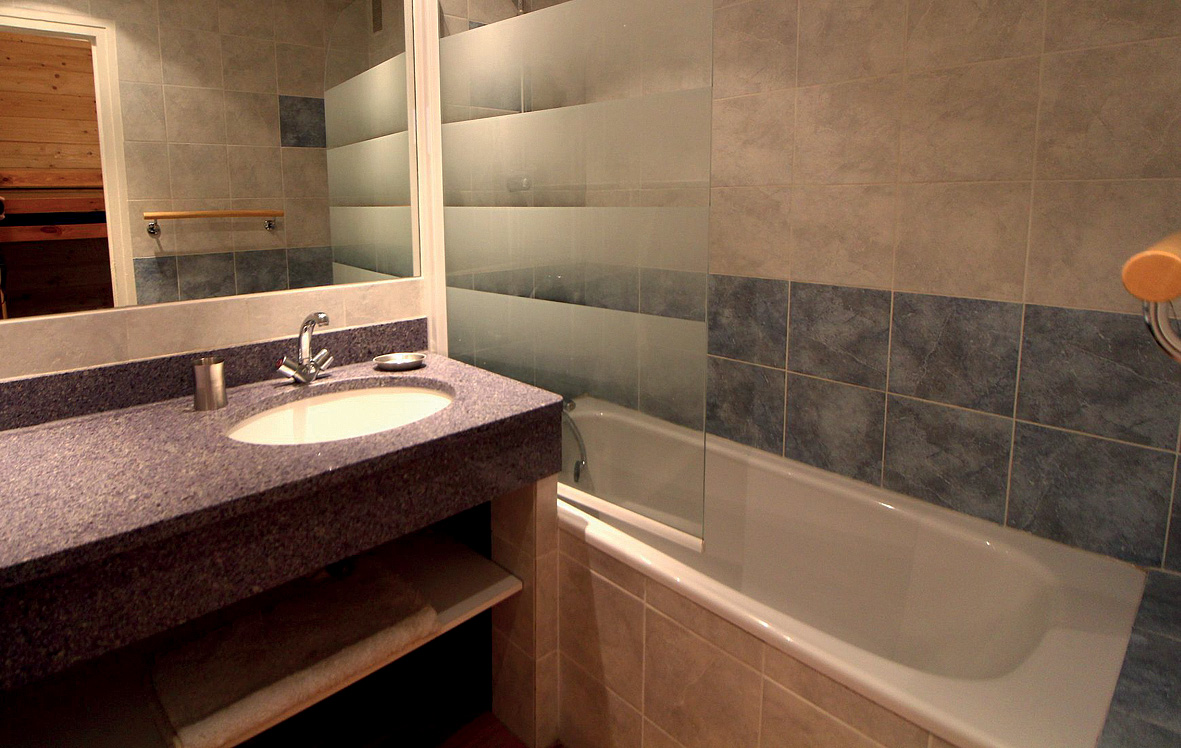 40 m² - 1 ložnice s manželskou postelí či 2 samostatnými lůžky či palandou či 2 palandami či 3 až 4 samostatnými lůžky, obývací pokoj s kuchyňským koutem a rozkládacím gaučem pro 2 osoby (možno i typ "šuplík") či 2 samostatnými lůžky či 3 až 4 samostatnými lůžky, kabina či vstupní místnost s palandou, sociální zařízení s vanou, zpravidla balkon