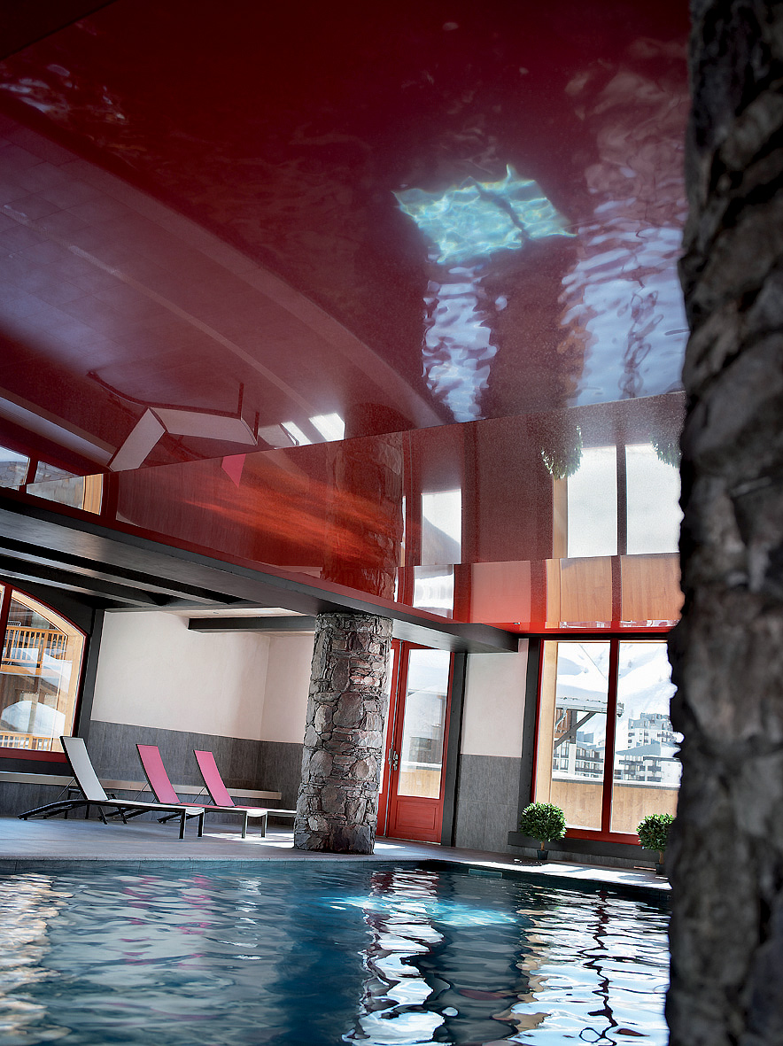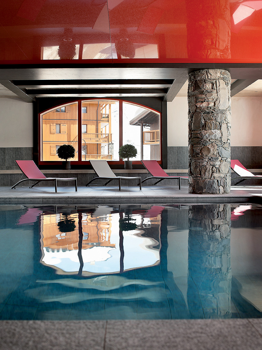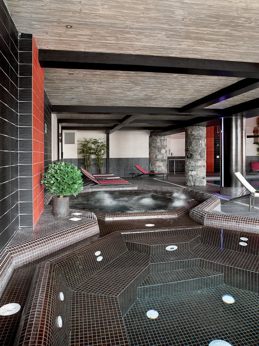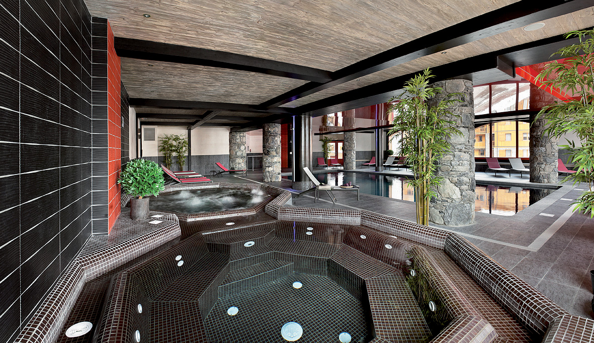 Centre O des Cimes - bazén# 15 x 5 m, 2x vířivka# až pro 7 osob, 2x finská sauna#, pára#, multifunkční sprcha#, masáže*, kosmetické služby*, velká posilovna#; služby označené # mohou využívat děti do 15 let jen v doprovodu dospělé osoby