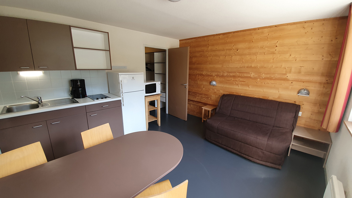 25 m² - obývací pokoj s kuchyňským koutem a rozkládacím gaučem pro 2 osoby (možno i typ "šuplík"), sociální zařízení s vanou
