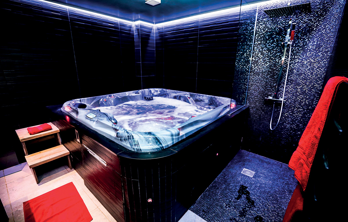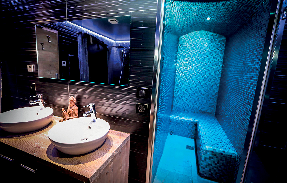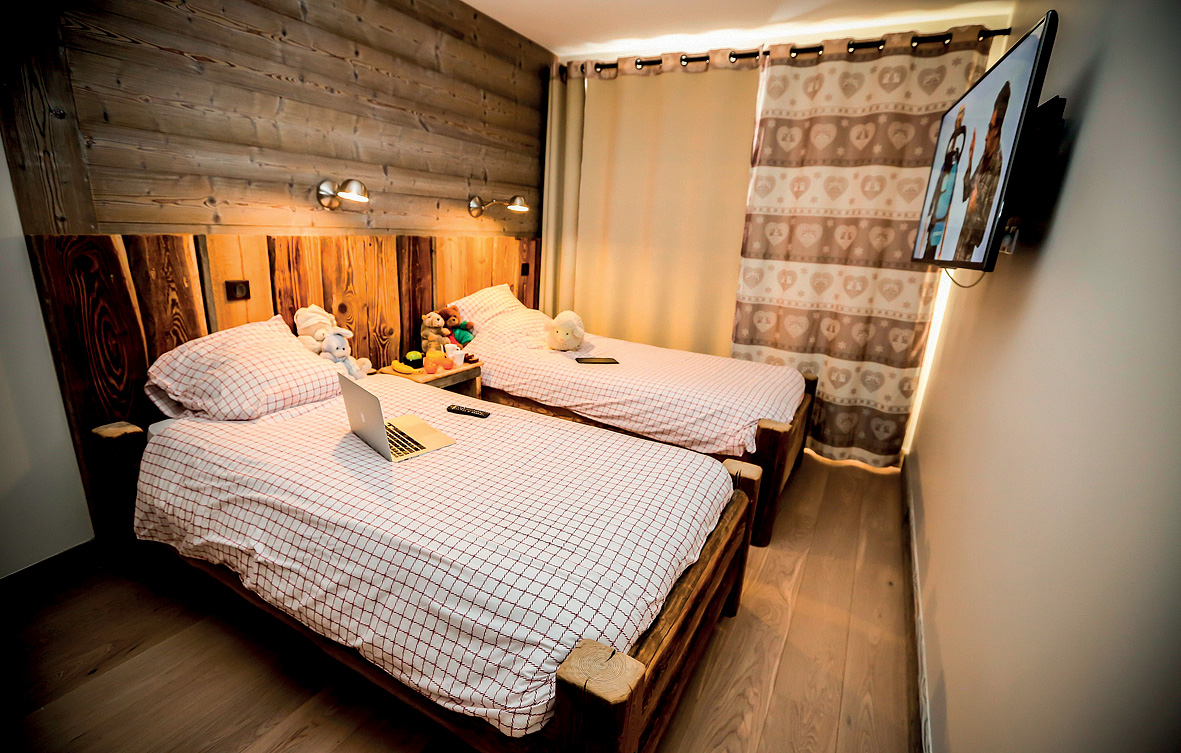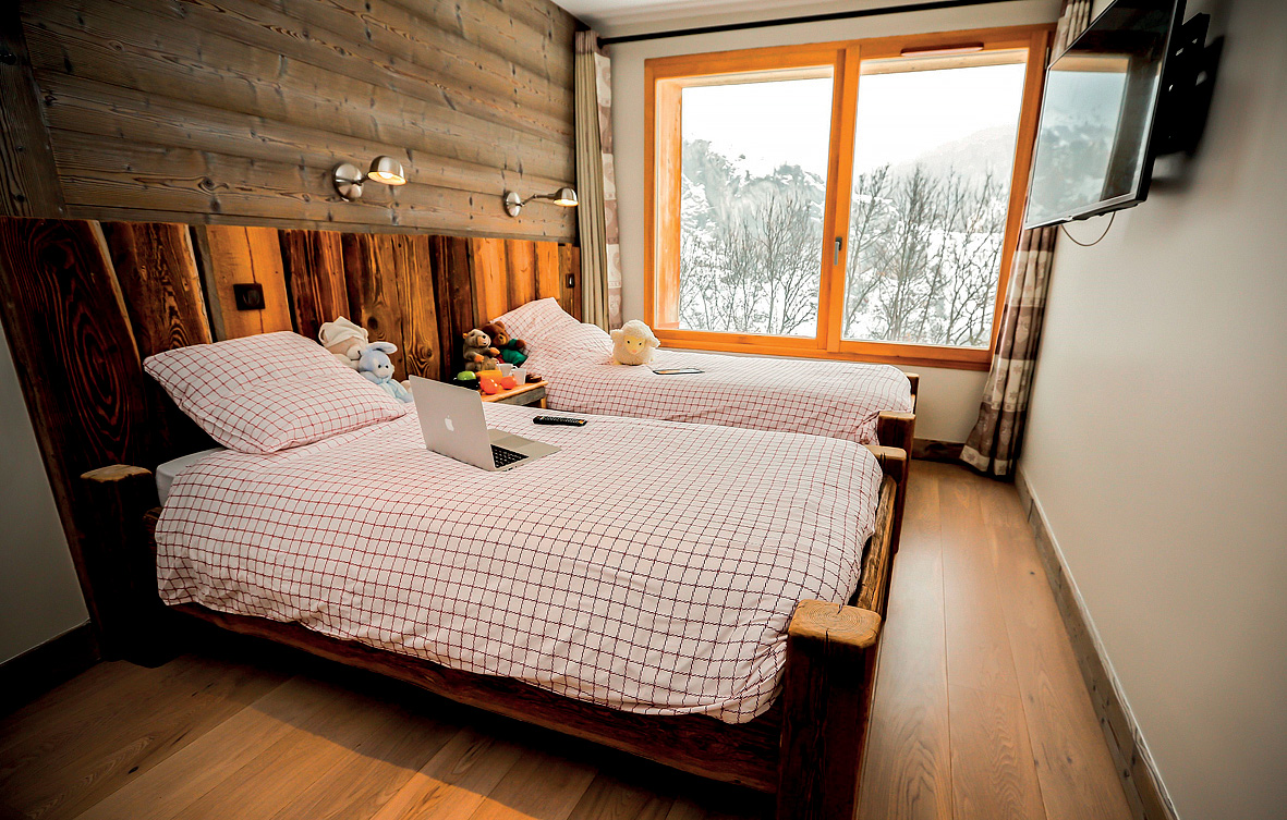 100 m² - 1. podlaží chaletu: obývací pokoj s kuchyňským koutem, terasa; 2. podlaží chaletu: 1 ložnice s manželskou postelí, 1 ložnice s manželskou postelí šíře 140 cm, sociální zařízení s vanou, balkon; suterén chaletu: 2 ložnice se 2 samostatnými lůžky, sociální zařízení