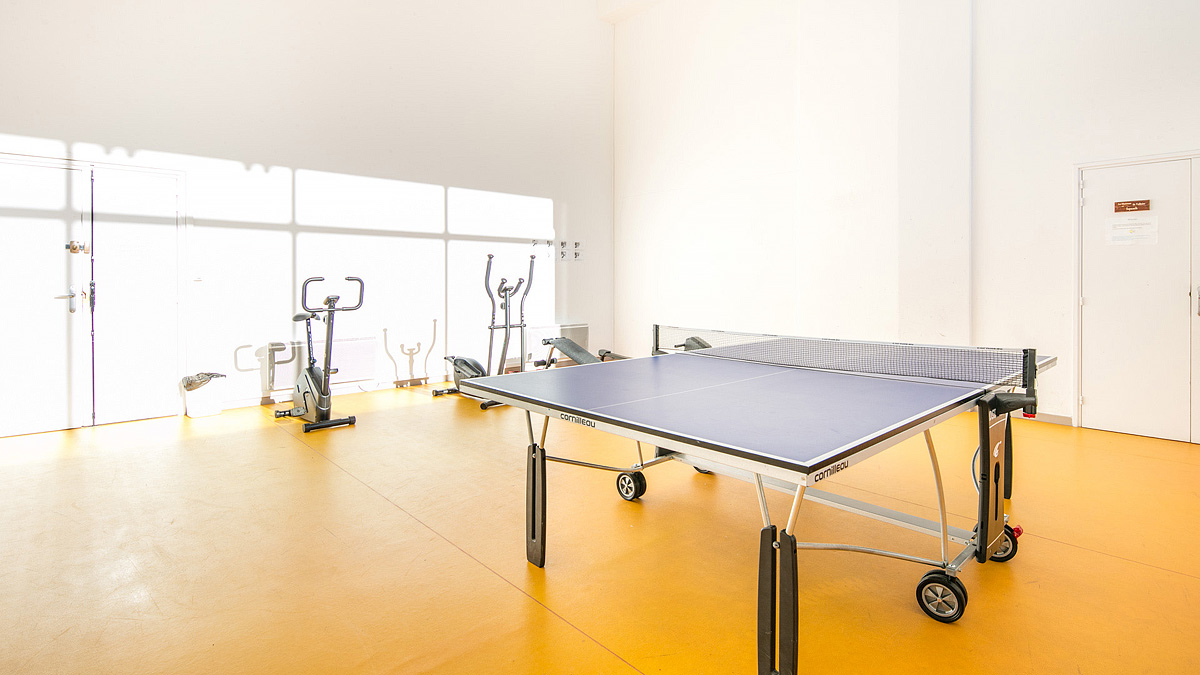 vnitřní bazén 14 x 8 m, sauna, pára, menší posilovna, squash a ping pong (půjčení vybavení zdarma oproti kauci)