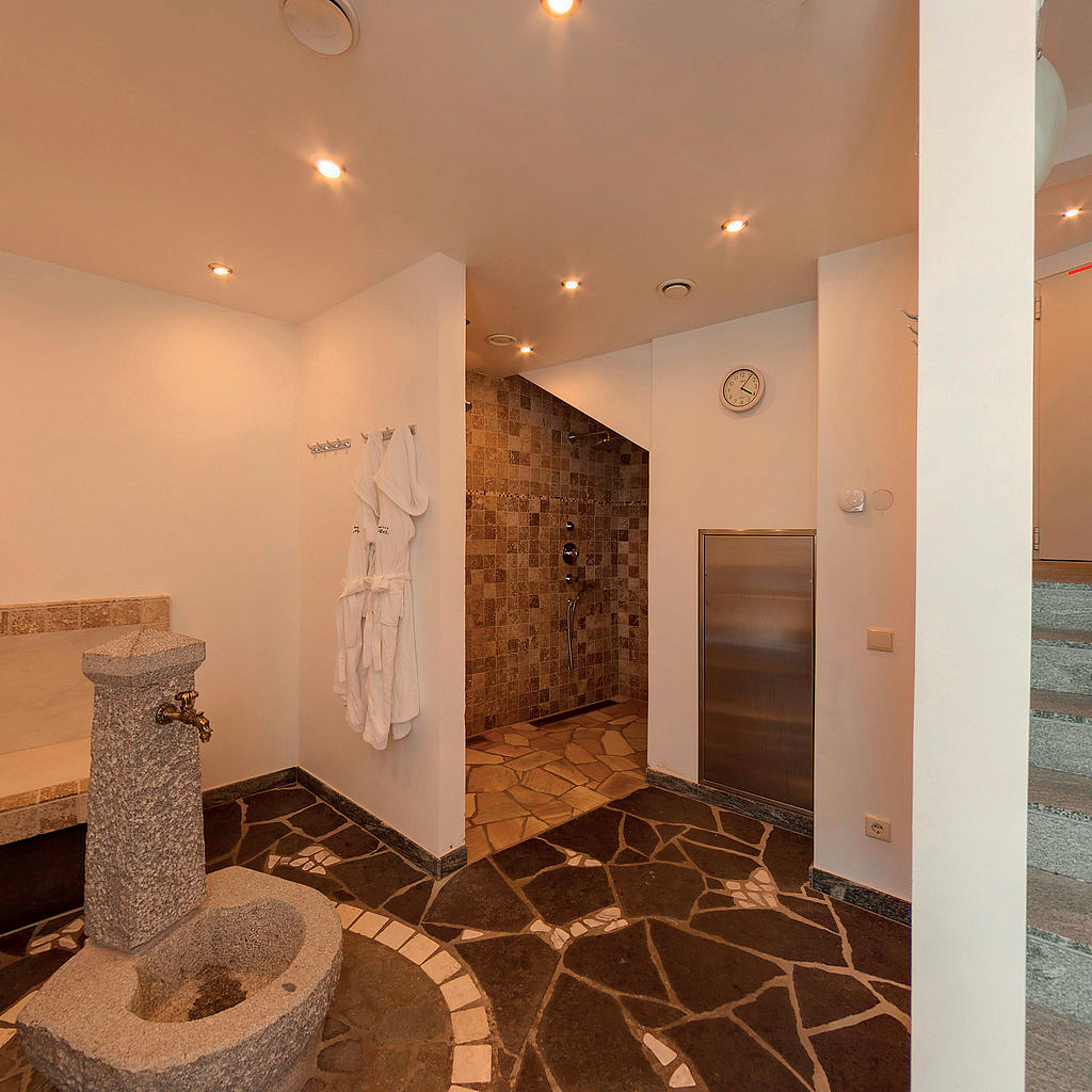 nabídka Hotelu Biovita Alpi - bazén nepravidelného tvaru se slanou vodou, venkovní vyhřívaný bazén 6,5 x 4,5 m se slanou vodou, vířivka až pro 8 osob, sauna#, biosauna#, pára#, infrakabina#, relaxační koutek s lehátky, malá posilovna, stolní tenis, stolní fotbal; Private Spa#* - infrakabina, vana s vířivkou pro 1 osobu, solná lázeň, solárium; služby označené # mohou využívat jen osoby od 15 let