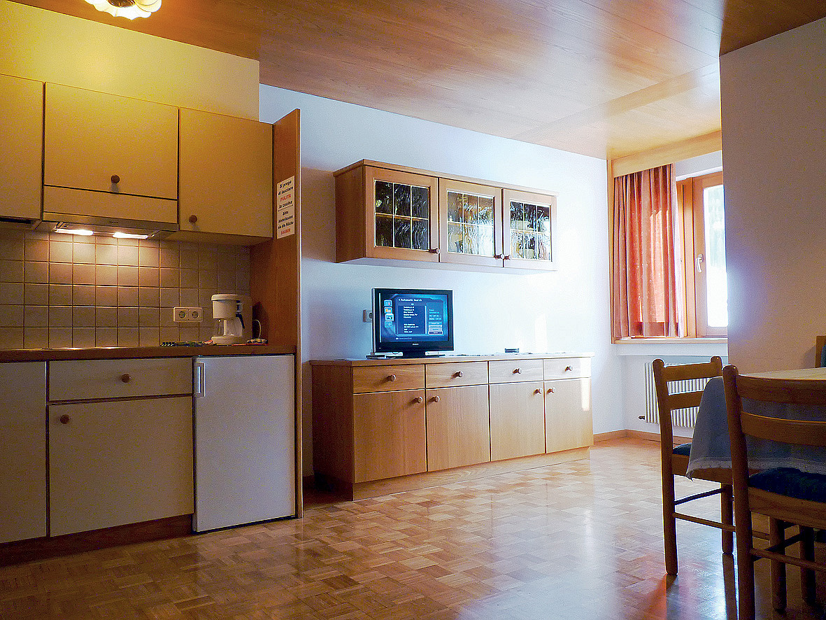 35 m² - obývací pokoj s kuchyňským koutem, manželskou postelí a rozkládacím křeslem na lůžko pro 1 osobu, předsíň, sociální zařízení s vanou, balkon