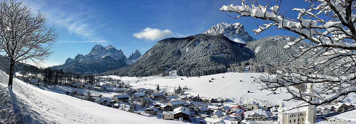 Sesto, centrum - 0 m, skiareál Monte Elmo - 750 m, skibus - 20 m