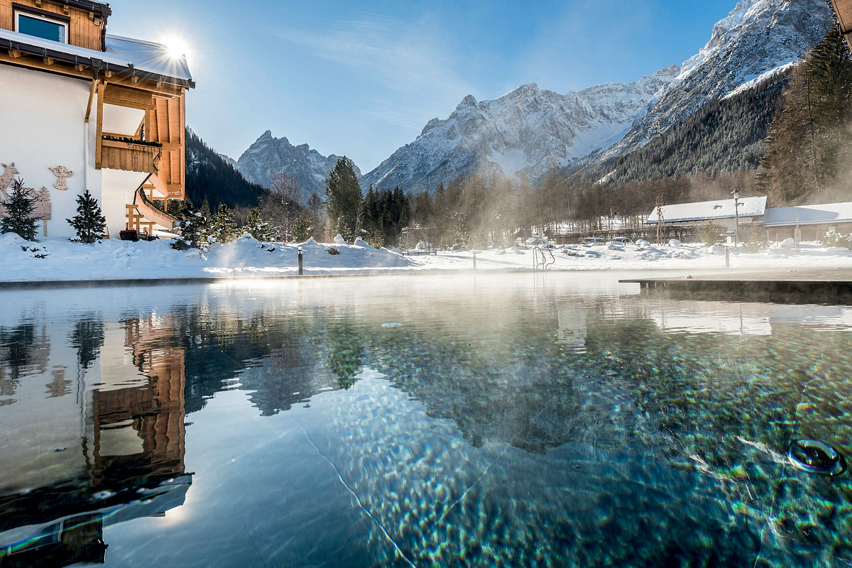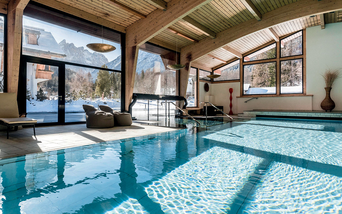 • venkovní vyhřívaný bazén s vířivkou a s výhledem na štíty hor