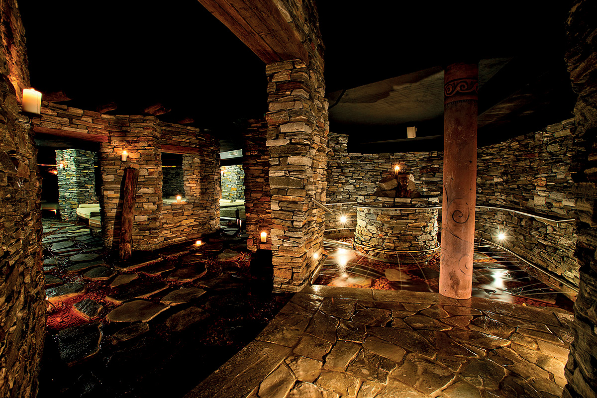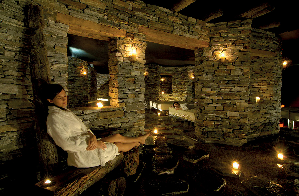 bazén 14 x 10 m, venkovní vyhřívaný bazén 12 x 8 m s vířivkou, dětský minibazén, 4x sauna#, panoramatická sauna#, pára#, infrakabina#, ledová lázeň#, sirná jeskyně#, sirné prameny#, horizontální solárium#*, 5x relaxační koutek# s lehátky, relaxační koutek# s lehátky a krbem, Kneippův chodník#, masáže#*, kosmetické služby#*, posilovna#; služby označené # mohou využívat jen osoby od 12 let; v rámci relaxačního centra jsou zdarma nabízeny též bylinkové čaje