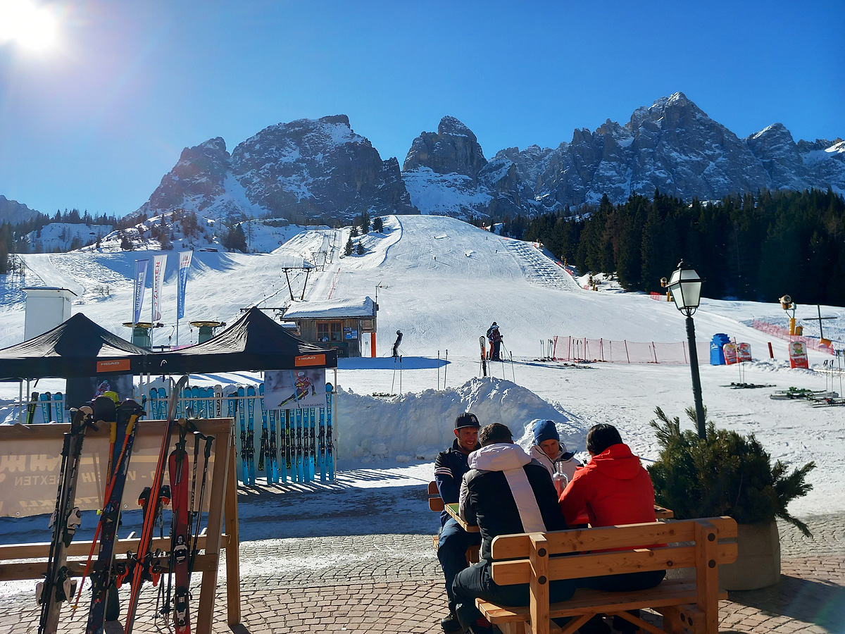 poznámka 2: skipas typu „Dolomiti Superski trasferibile genitori“ je přenosný mezi oběma rodiči dítěte a umožňuje vždy lyžovat jednomu z rodičů, zatímco se druhý věnuje nelyžujícímu dítěti do nedovršených 3 let (resp. narozenému v roce 2022 a později), jež nemá nárok na skipas; nárok dalšího dítěte téže rodiny do nedovršených 8 let věku na skipas se slevou pro kategorii bimbo stejné délky i termínu platnosti tímto není dotčen