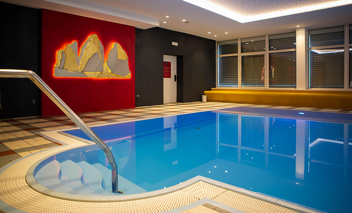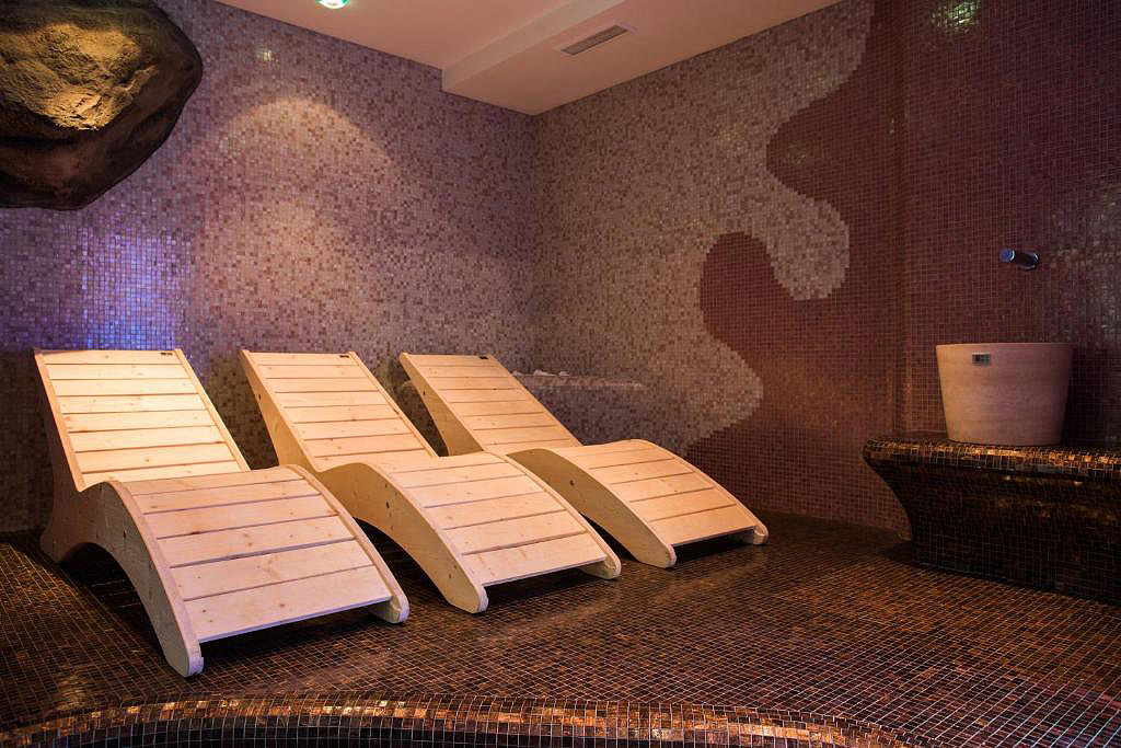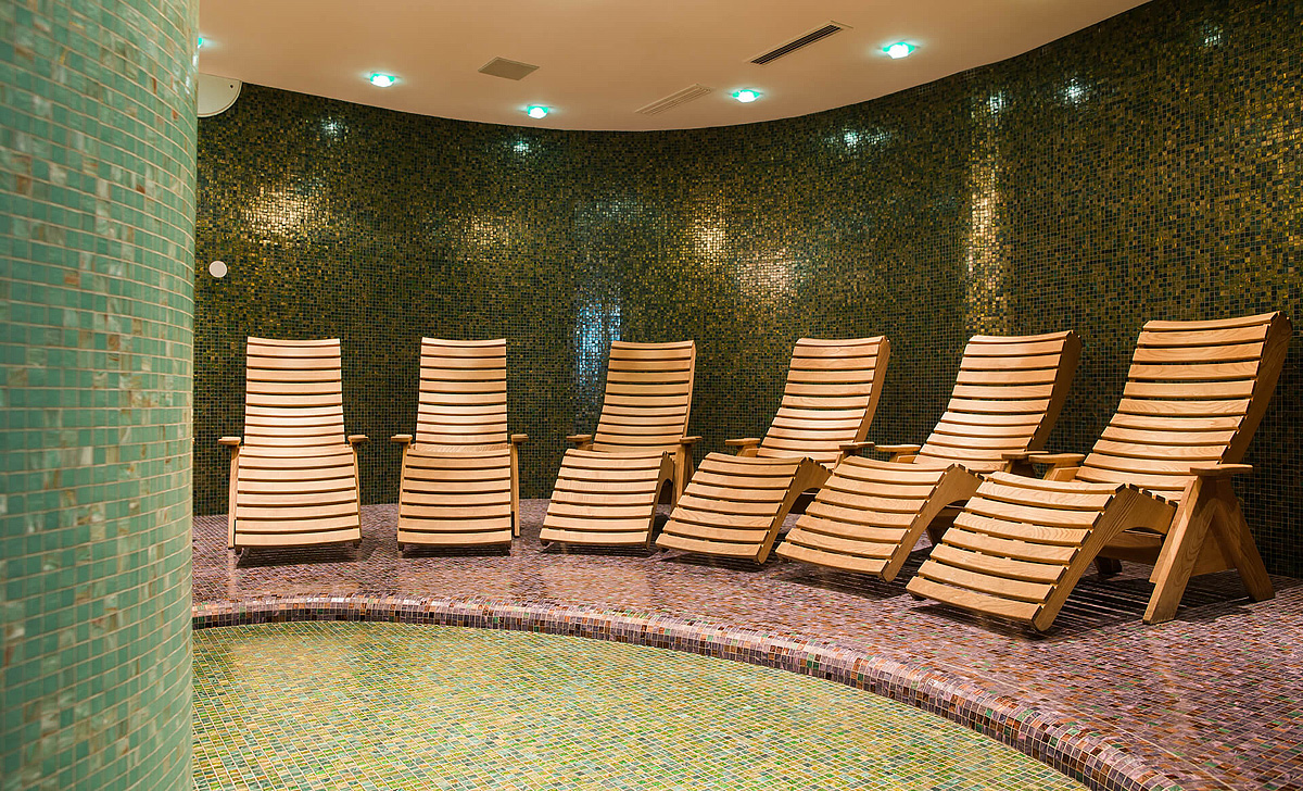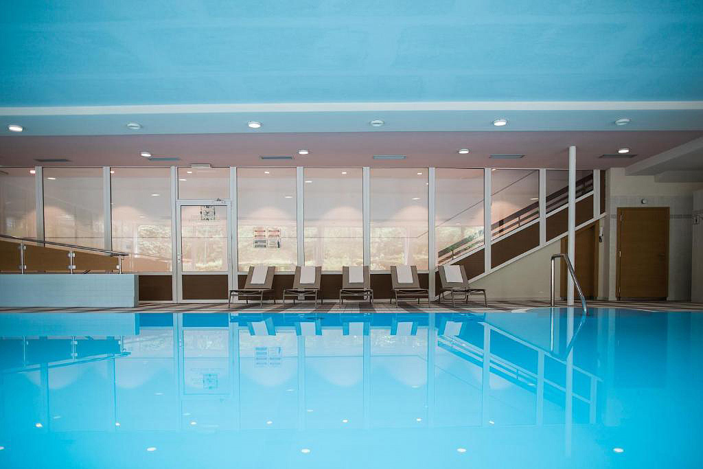 bazén 12x6 m, vířivka# až pro 8 osob, finská sauna#, pára#, infrakabina*#, relaxační koutek# s lehátky, krytý tenisový kurt* (na vyžádání), malá posilovna#, masáže*#, tělocvična* na jógu služby označené # mohou využívat děti až od 16 let