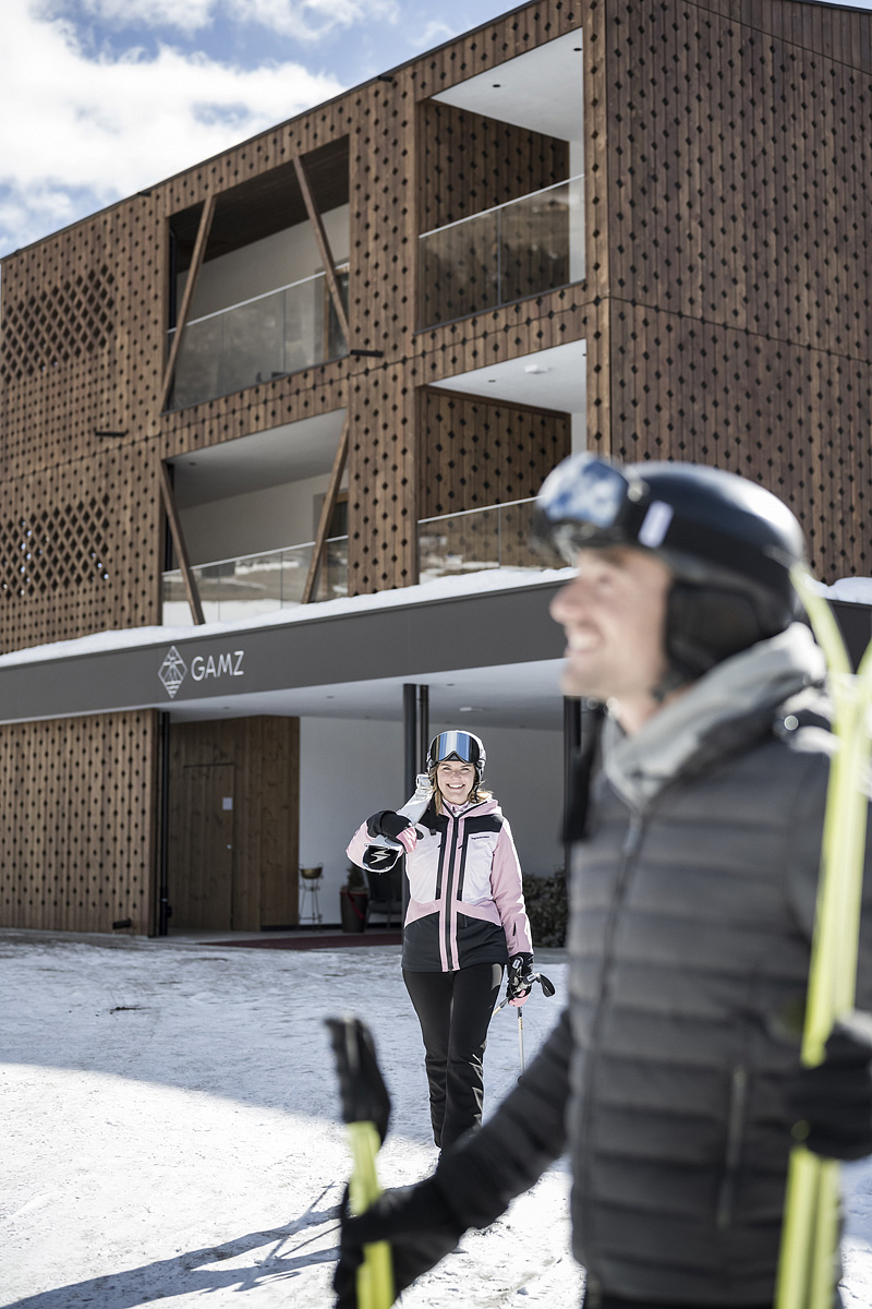 Sesto, centrum - 500 m, skiareál Monte Elmo - 140 m, dětský skiareál Waldheim - 150 m, skibus - 90 m