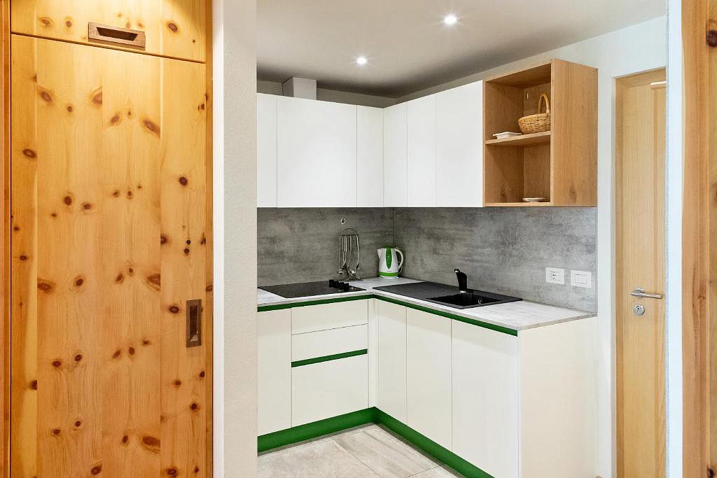 mono 2 Suite Altoatesina - 45 m² – obývací pokoj se skříňovou postelí či rozkládacím gaučem pro 2 osoby, samostatná kuchyňka, sociální zařízení, balkon