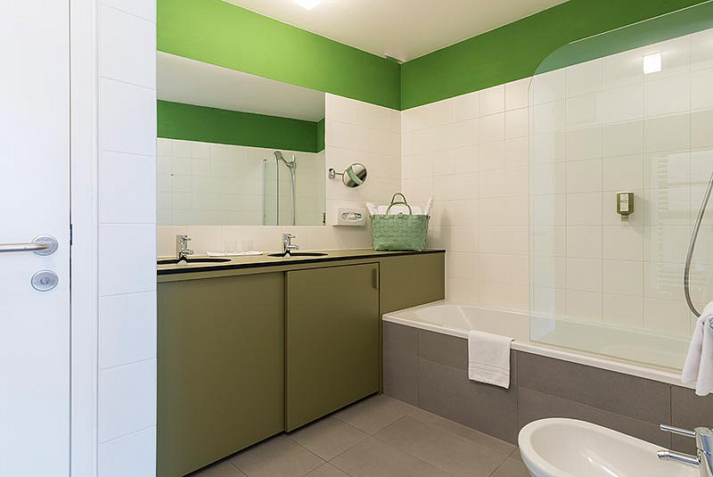 trilo 2+3 Doge di Venezia - 55 m² - 1 ložnice s manželskou postelí, 1 ložnice se 2 samostatnými lůžky, obývací pokoj s kuchyňským koutem a rozkládacím gaučem pro 1 osobu, sociální zařízení se sprchou či vanou, balkon; maximální obsazenost apartmánu jsou 2 dospělé osoby a 3 děti do nedovršených 18 let