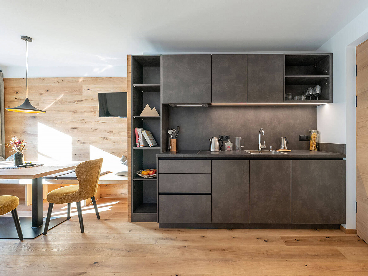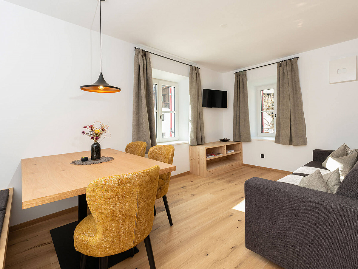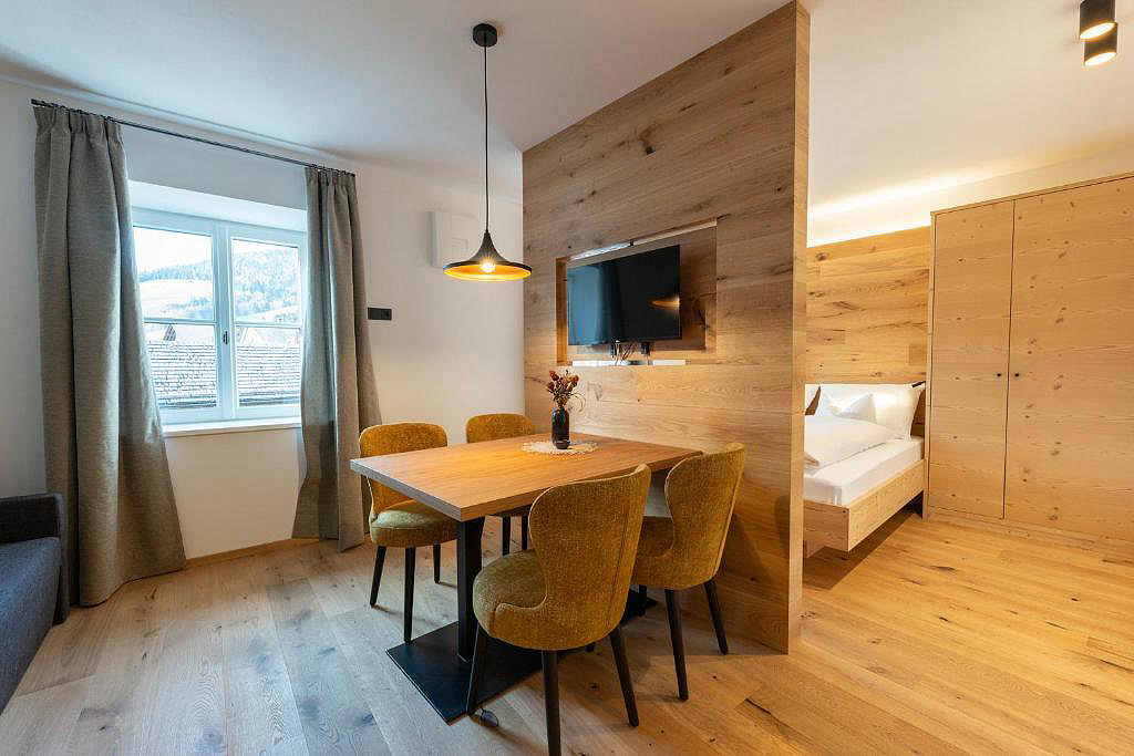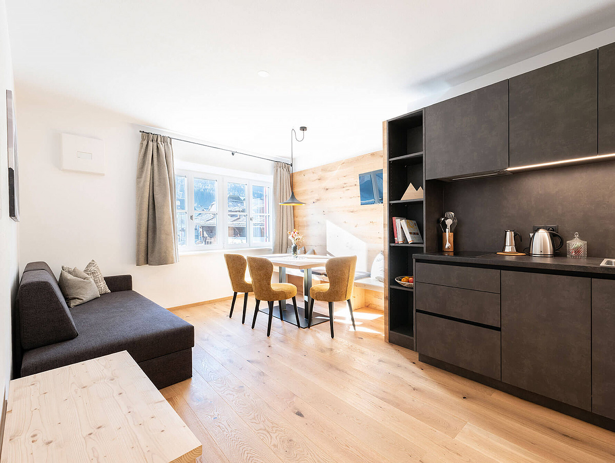 30 m² - obývací pokoj s kuchyňským koutem, částečně oddělenou manželskou postelí a rozkládacím gaučem pro 2 osoby, sociální zařízení; maximální obsazenost apartmánu jsou 2 dospělé osoby a 2 děti do nedovršených 18 let