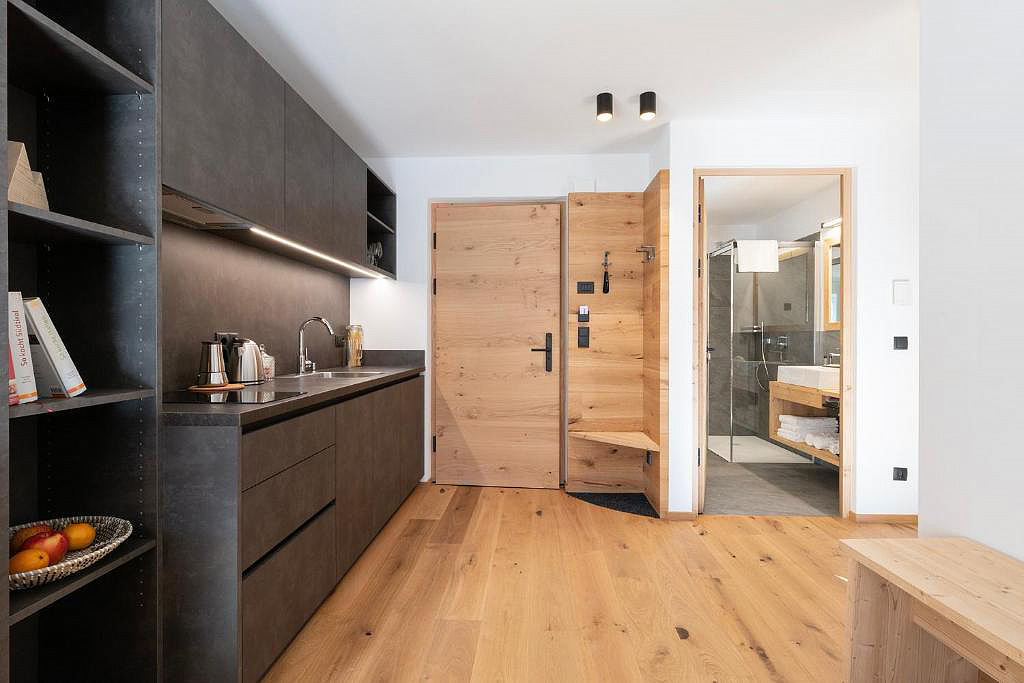51 m² – 1 ložnice s manželskou postelí, 1 ložnice s palandou, obývací pokoj s kuchyňským koutem a rozkládacím gaučem pro 2 osoby, sociální zařízení; maximální obsazenost apartmánu jsou 4 dospělé osoby a 2 děti do nedovršených 18 let
