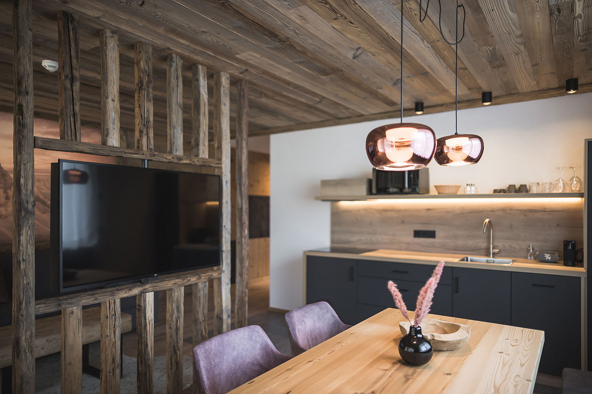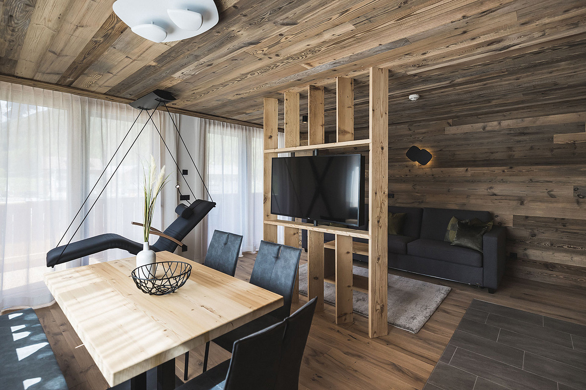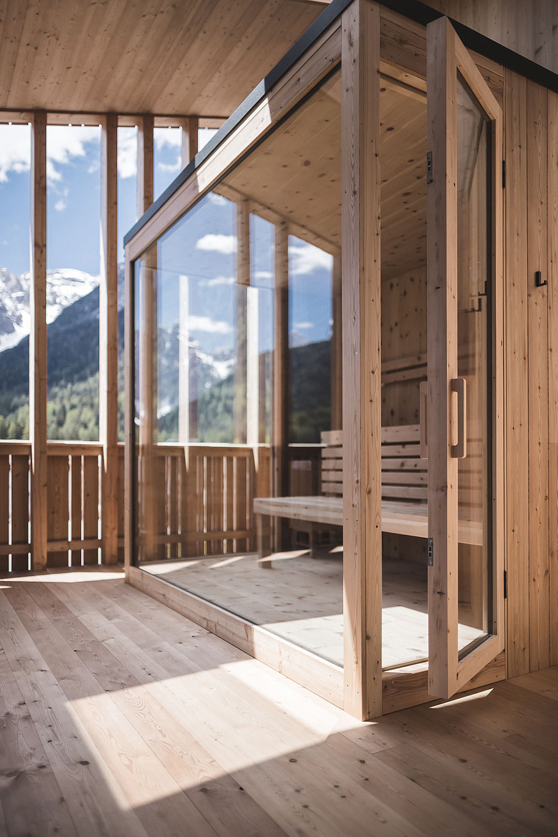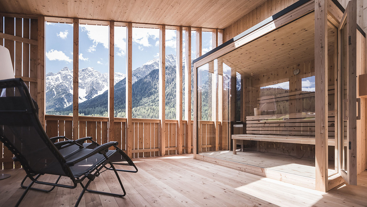 privátní panoramatická sauna (jen u typologie bilo 2+2 Penthouse S´Oltl a trilo 4+2 Penthouse Schelllap), relaxační infračervené lehátko (jen u typologie trilo 4+2 Kinigschworte)