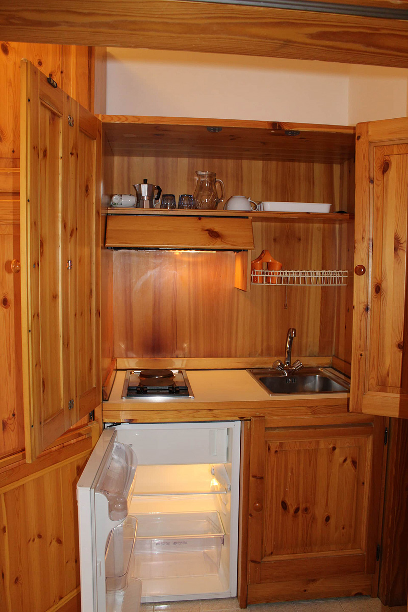 50 m² – 1 ložnice s 2 rozkládacími gauči pro 2 osoby, obývací pokoj s malým kuchyňským koutem a rozkládacím gaučem pro 2 osoby, sociální zařízení