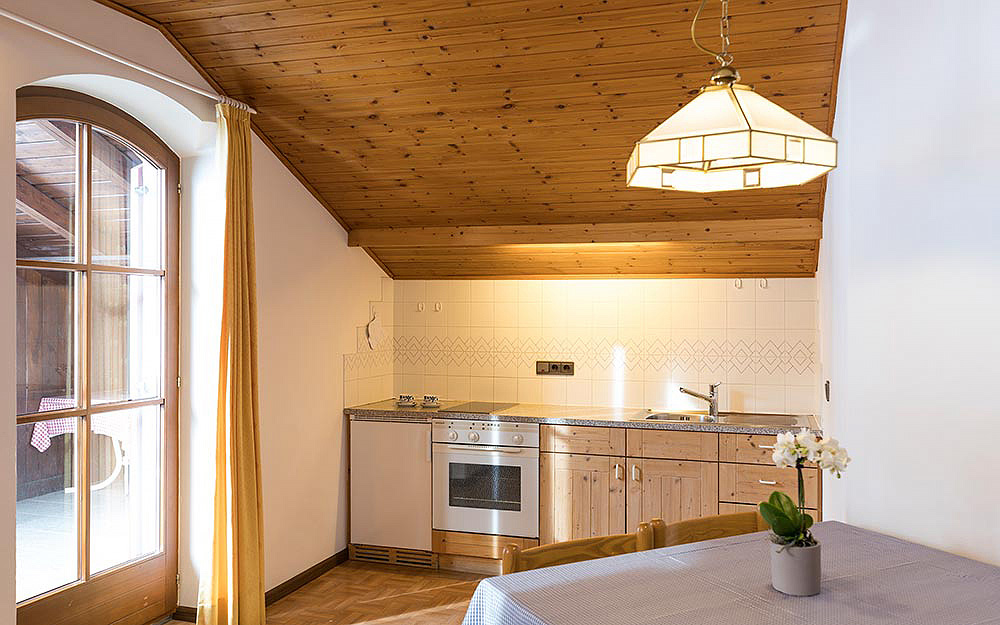 bilo 2+2 Betulin - 45 m² - 1 ložnice s manželskou postelí, obývací pokoj s kuchyňským koutem a rozkládacím gaučem pro 2 osoby, sociální zařízení, balkon či terasa se vstupem na zahradu; maximální obsazenost apartmánu jsou 2 dospělé osoby a 2 děti do nedovršených 18 let