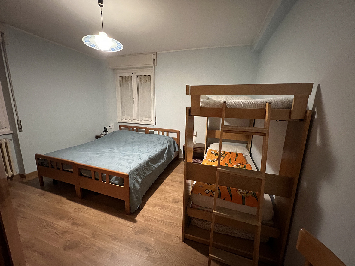 quadrilo 6 - 1 ložnice s manželskou postelí, 1 ložnice s 2 samostatnými lůžky (lze i jako manželská), 1 ložnice s 2 samostatnými lůžky, obývací pokoj s kuchyňským koutem, 1x sociální zařízení, apartmán je lehce suterénní