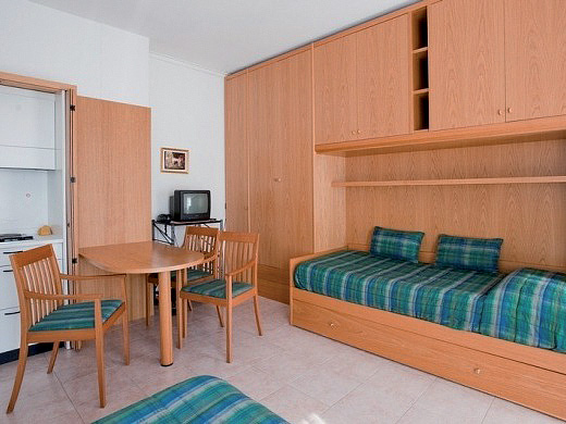 mono 2+1 - 24 m² - obývací pokoj se skříňovým kuchyňským koutem, manželskou postelí a rozkládacím gaučem typu "šuplík" pro 1 dospělou osobu či 2 děti do nedovršených 12 let, sociální zařízení
