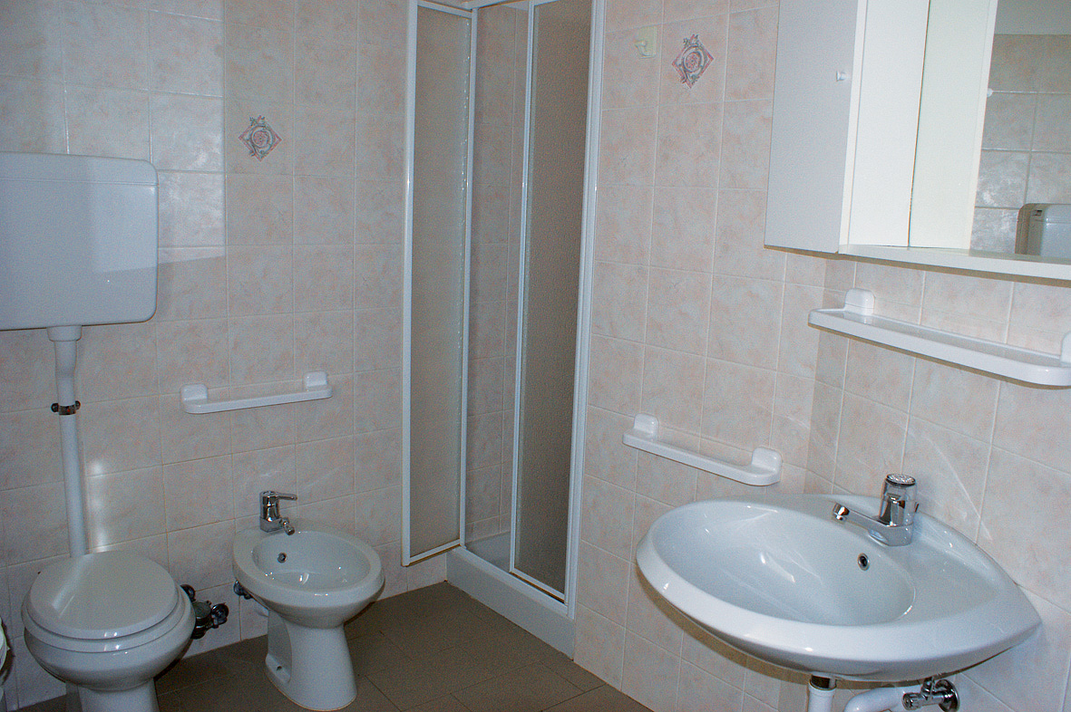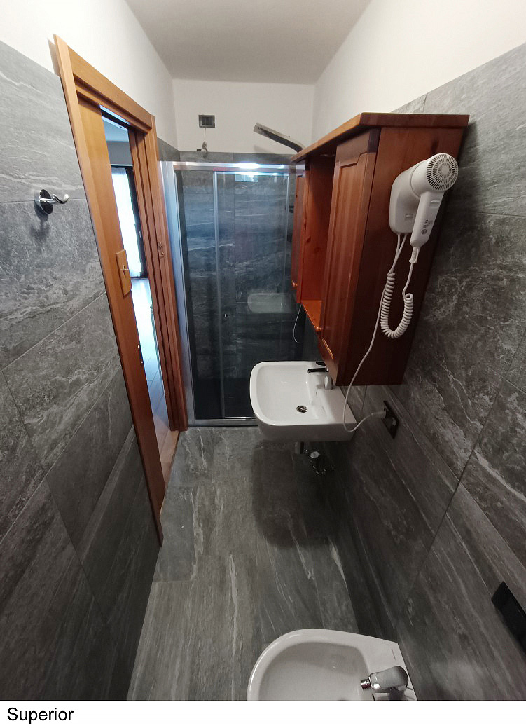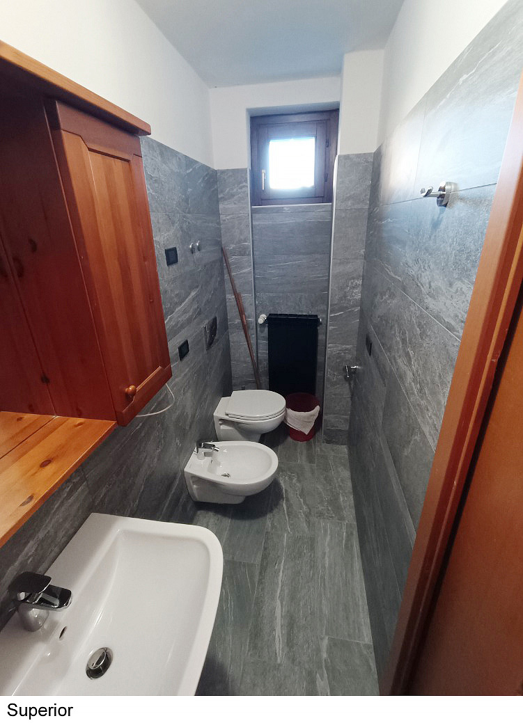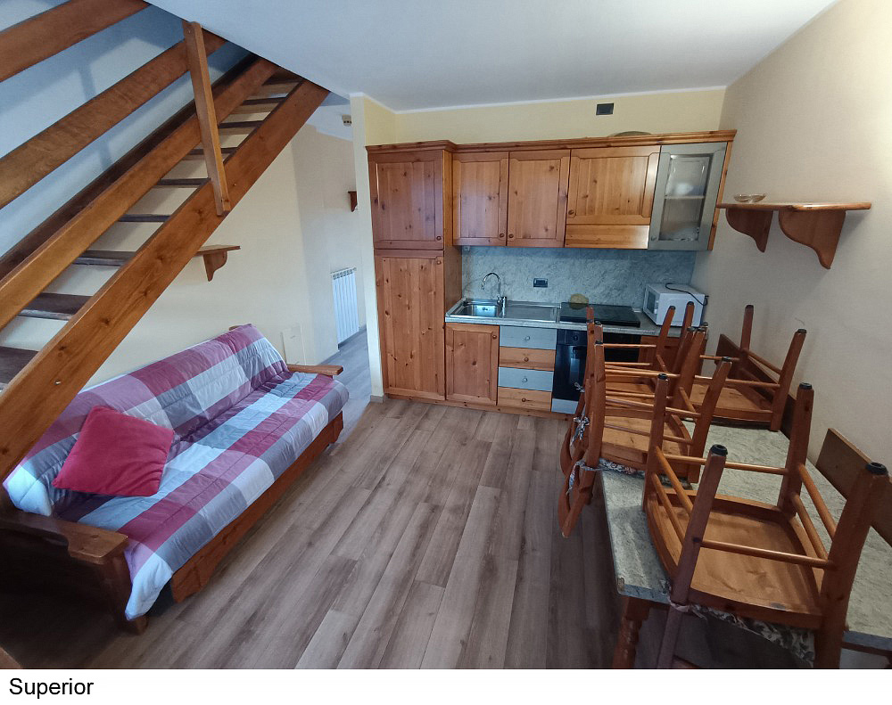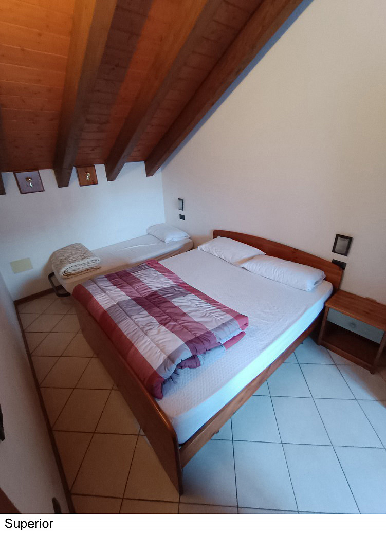 typ A - 50 m² - 1. podlaží apartmánu: 1 ložnice se 2 samostatnými lůžky, obývací pokoj s kuchyňským koutem a rozkládacím gaučem pro 2 osoby, zrekonstruované sociální zařízení, balkon; 2. podlaží apartmánu: 1 ložnice s manželskou postelí a skříňovým rozkládacím lůžkem pro 1 osobu, zrekonstruované sociální zařízení (jen umyvadlo a WC), balkon;