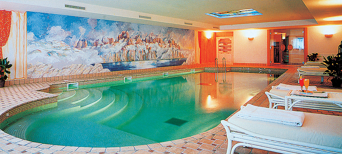 bazén 12 x 4 m s vířivkou až pro 10 osob a protiproudem, sauna#, pára#, ledová lázeň#, relaxační koutek# s lehátky, masáže*; služby označené # nemohou využívat děti do 14 let