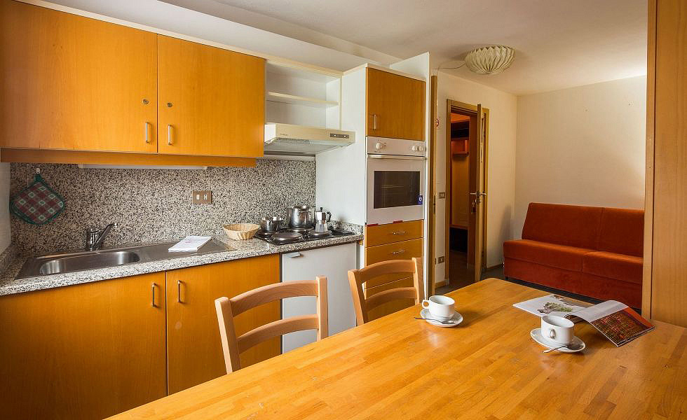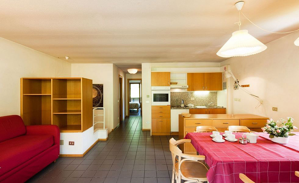 Arabba - lokalita Passo Campolongo, skiareál Arabba / Marmolada - Sella Ronda - 950 m , Arabba - 4 km, Corvara - 5 km; za dobrých lyžařských podmínek příjezd na lyžích možný přímo k residenci
