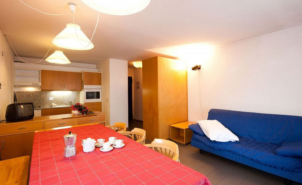 55 m² - 1 ložnice se 2 samostatnými lůžky, 1 ložnice se skříňovou palandou, obývací pokoj s kuchyňským koutem a rozkládacím gaučem pro 2 osoby, sociální zařízení, balkon