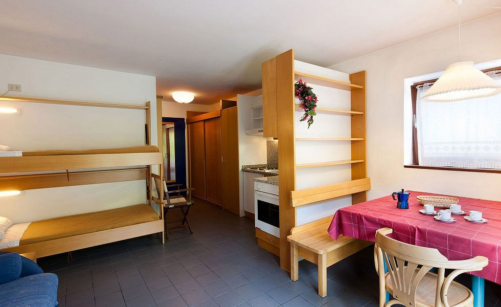33 m² - obývací pokoj s kuchyňským koutem, rozkládacím gaučem pro 2 osoby a 2 skříňovými palandami, sociální zařízení, terasa