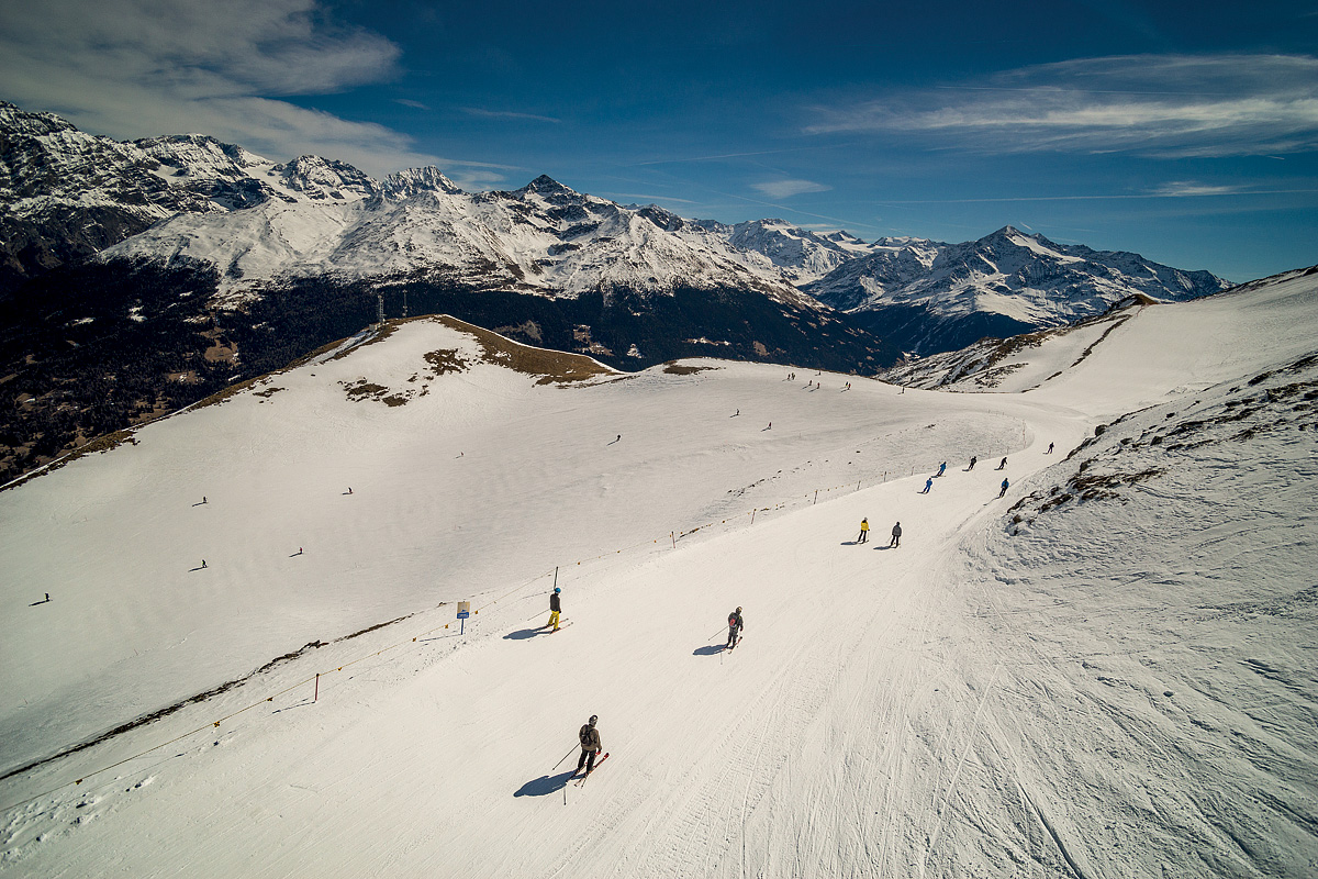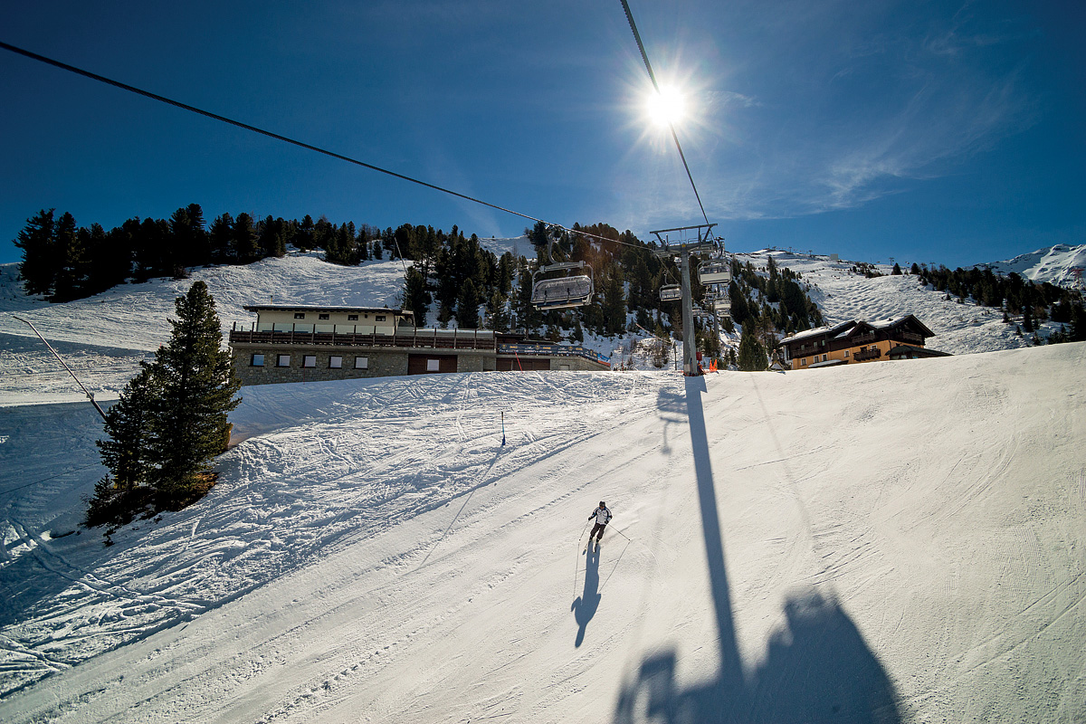 Skiareál San Colombano zdaleka tak exponovaný není, a je tedy zejména za extrémních povětrnostních podmínek vhodnější alternativou zejména pro rodiny s dětmi.
