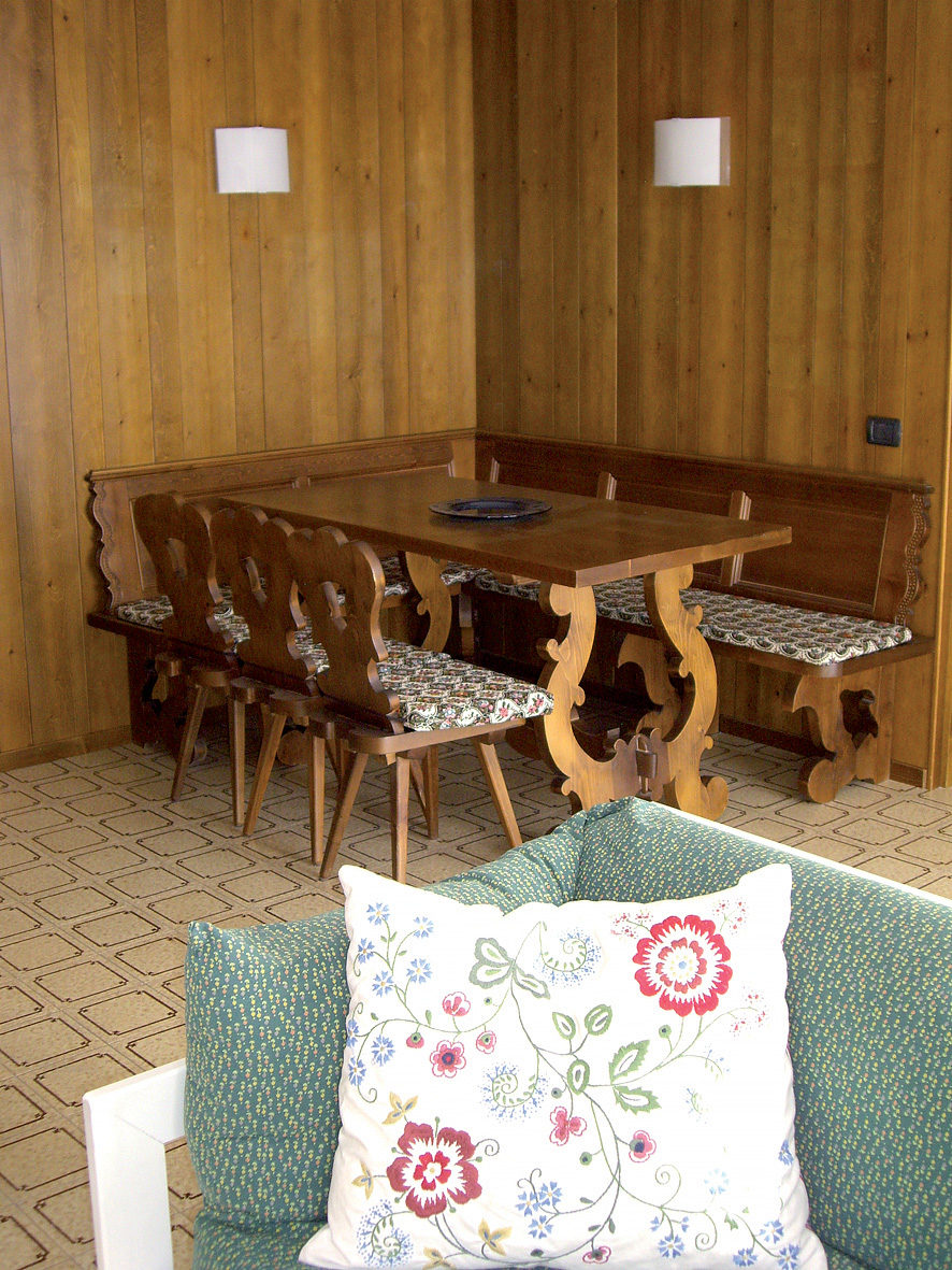 1 ložnice s manželskou postelí, 1 ložnice se 2 palandami, obývací pokoj s kuchyňským koutem a případně rozkládacím gaučem pro 1 osobu, sociální zařízení; apartmán je situovaný v podkroví